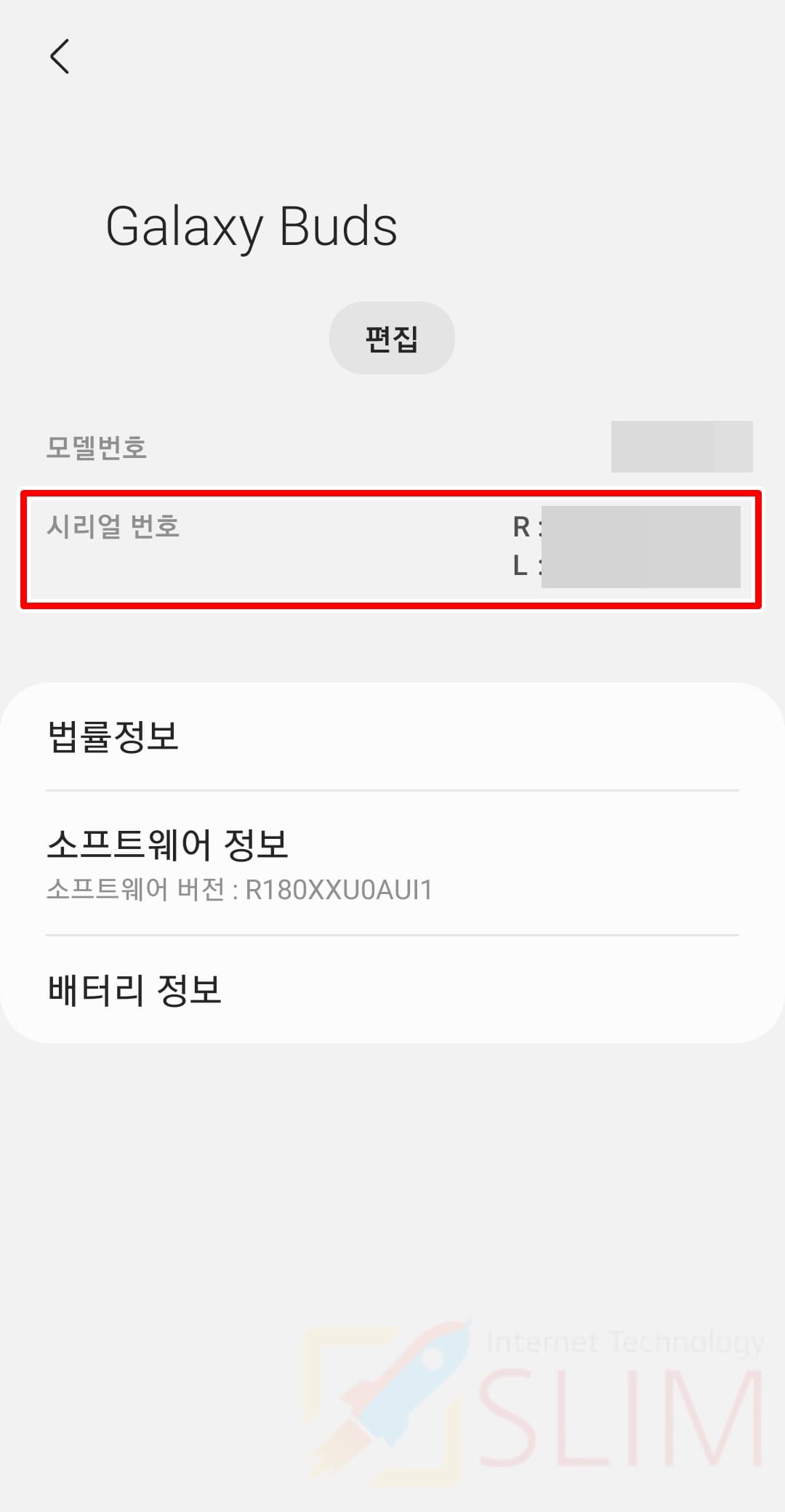 6. 갤럭시 버즈 시리얼번호를 확인할 수 있습니다.