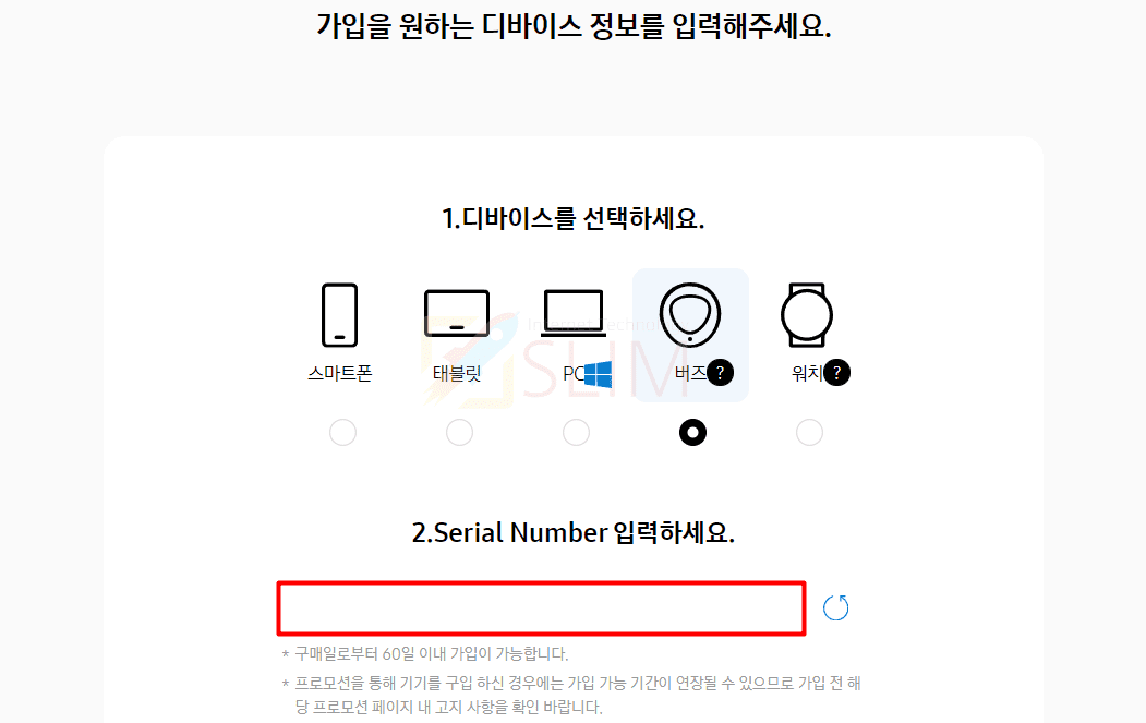 7. 나의 갤럭시 버즈 시리얼넘버를 입력합니다.