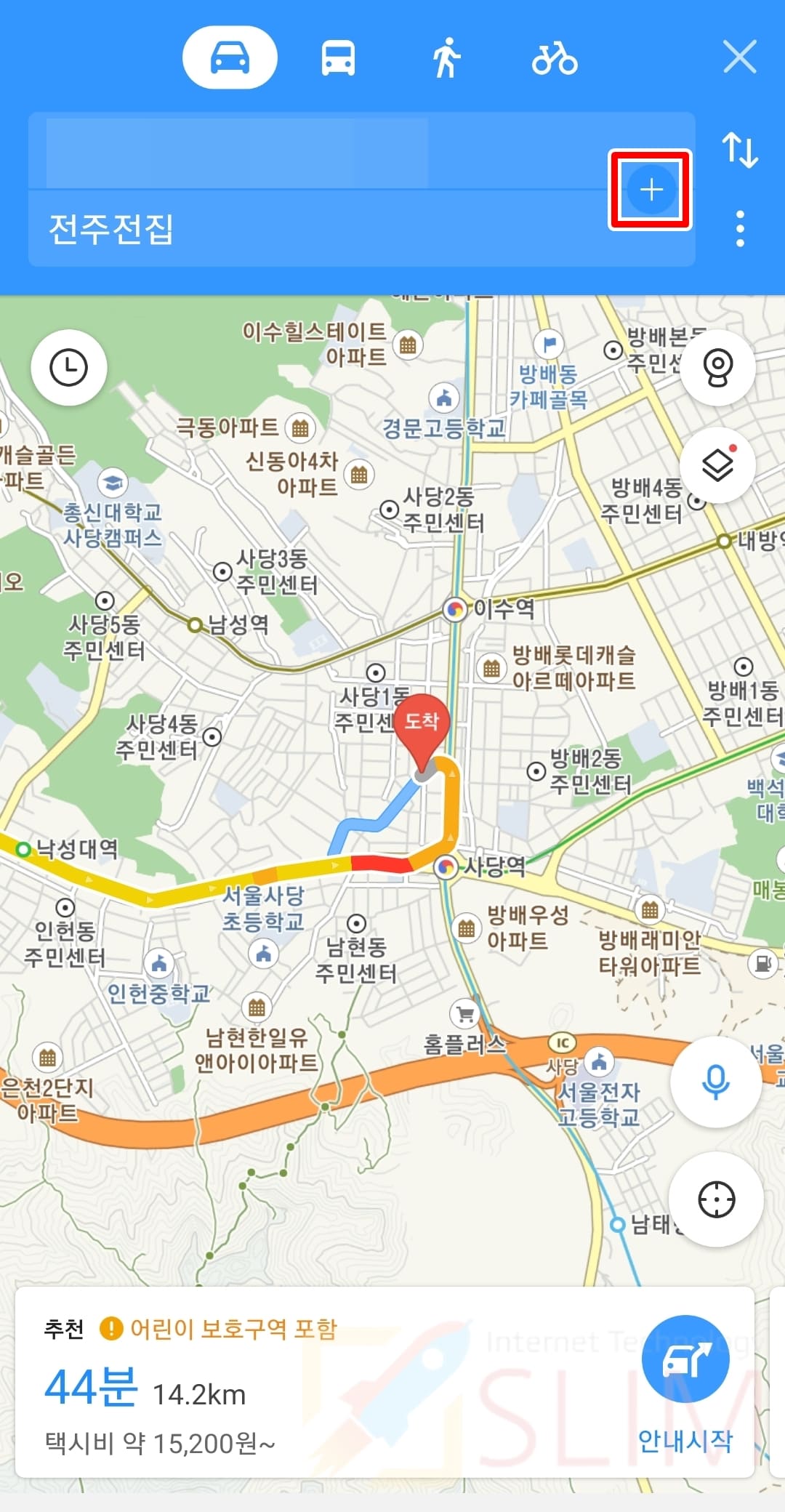 저는 최종 도착지로 "전주 전집"을 기입해서 설정해주었습니다. 이것은 경유지가 아닌 마지막으로 내가 도착할 목적지를 의미하니 참고하시길 바랍니다.
