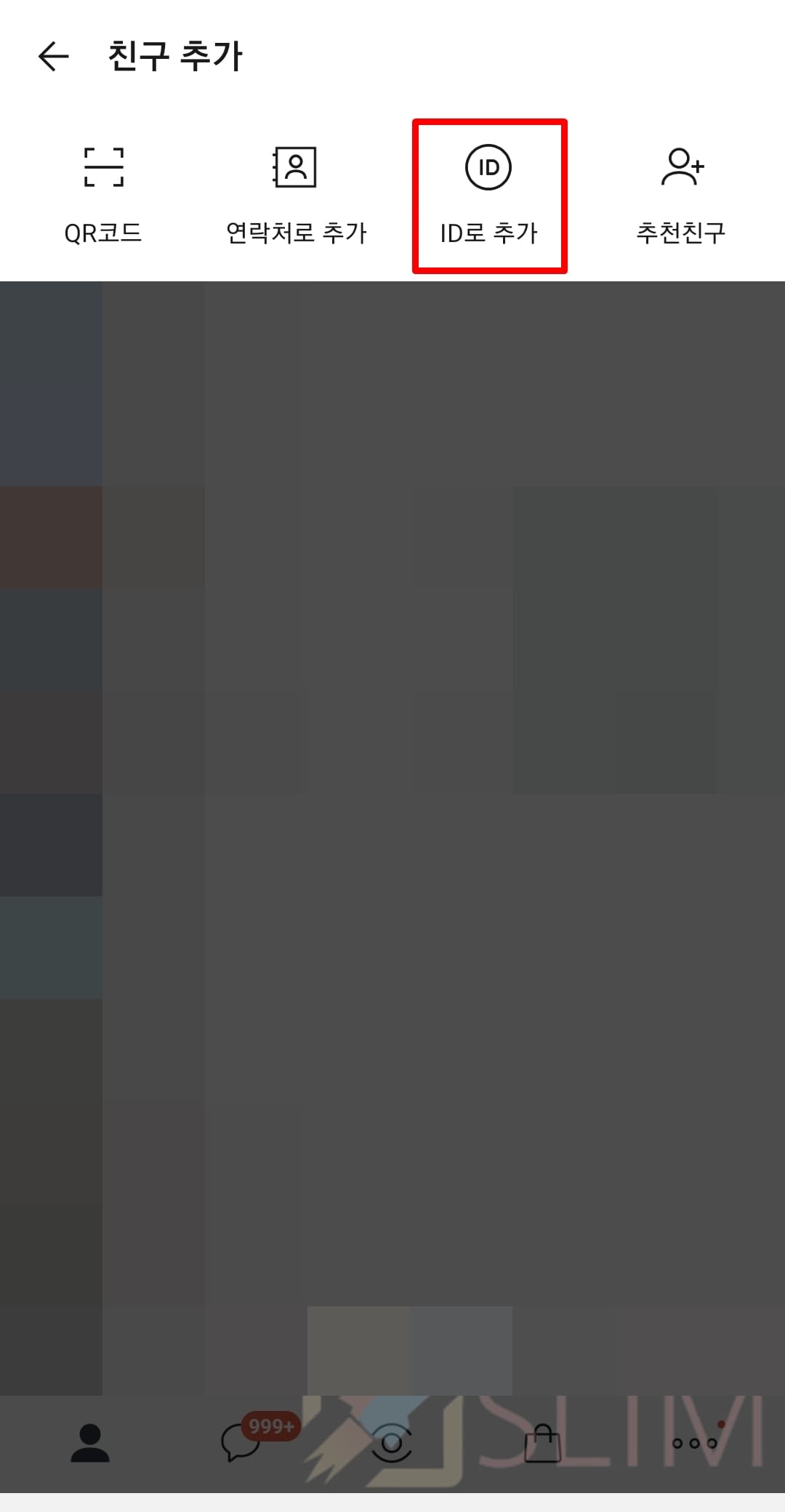 카카오톡 아이디 확인할 수 있는 다른 방법을 소개해드리겠습니다. 이것은 친구를 ID로 추가하는 화면 하단을 살펴보는것인데요. 이곳에서 나의 카톡 아이디를 빠르게 확인할 수 있어서 편리합니다. 단, 아이디 변경은 불가능하니 만약 변경을 희망하신다면 위의 글을 다시 읽고 오시길 바랍니다.