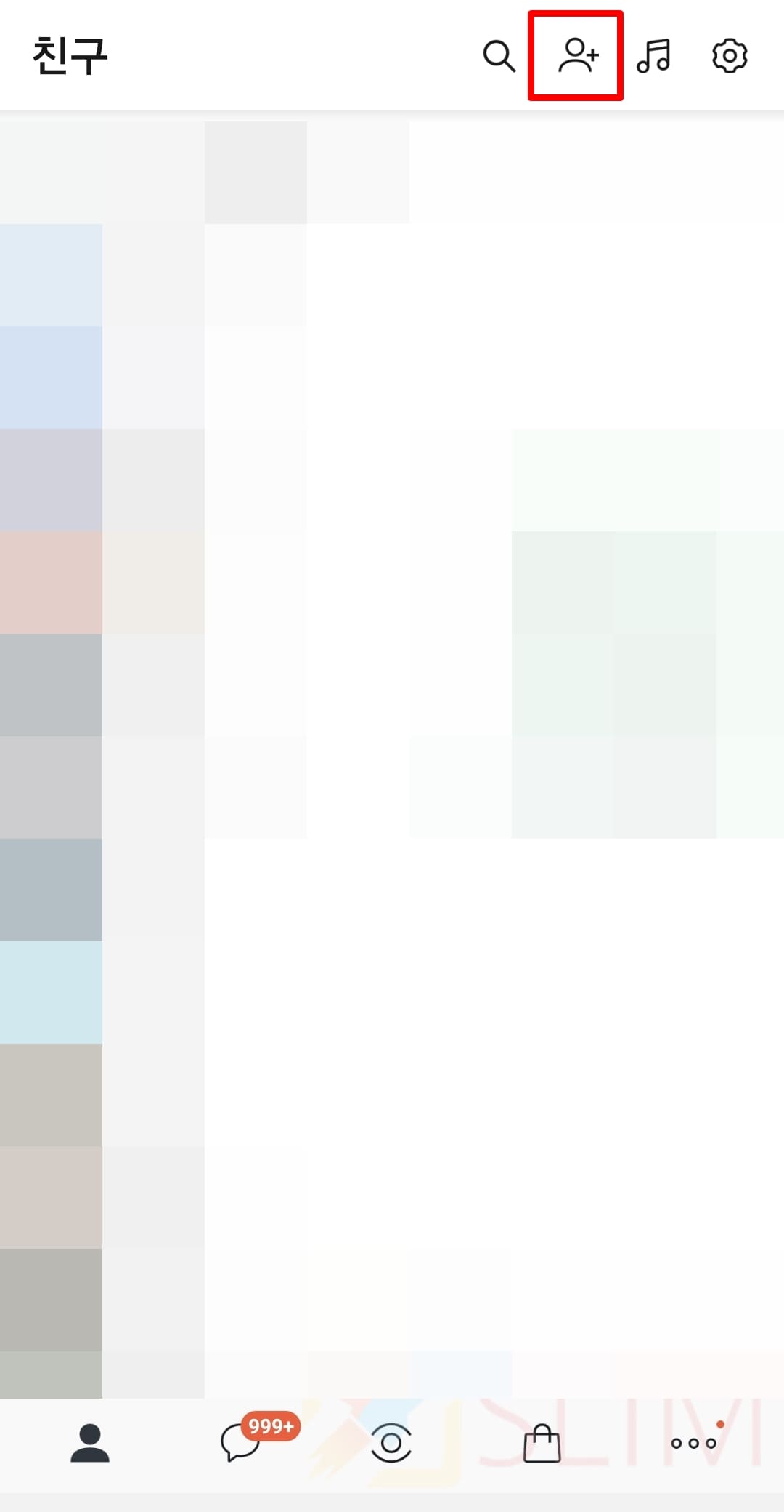 1. 카톡 앱 상단에 있는 사람아이콘+버튼을 누릅니다.