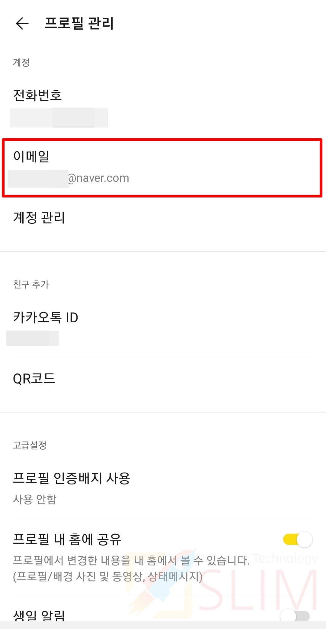 1. 카카오톡에서 내 프로필을 누릅니다.