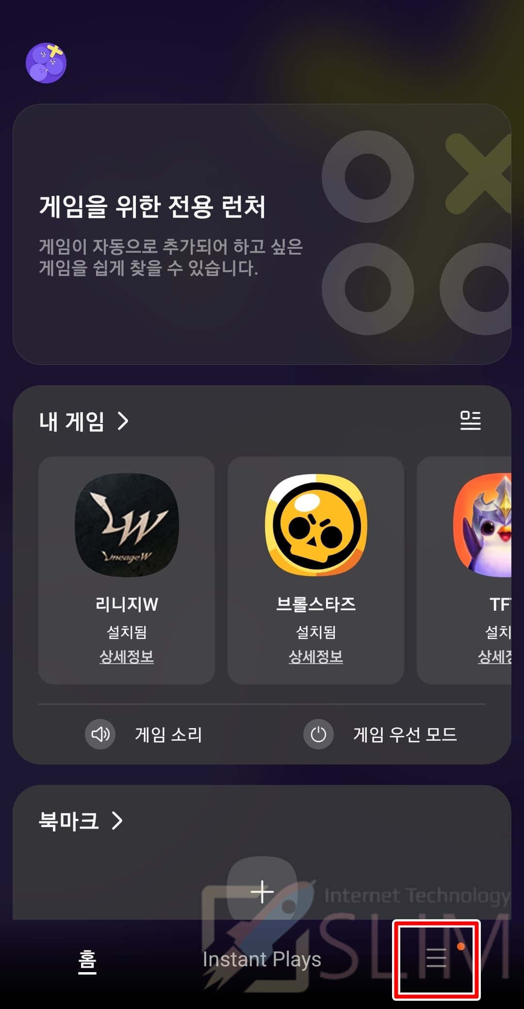 1. 게임런처 앱을 실행하고 더보기버튼(줄 3개 모양)을 누릅니다.