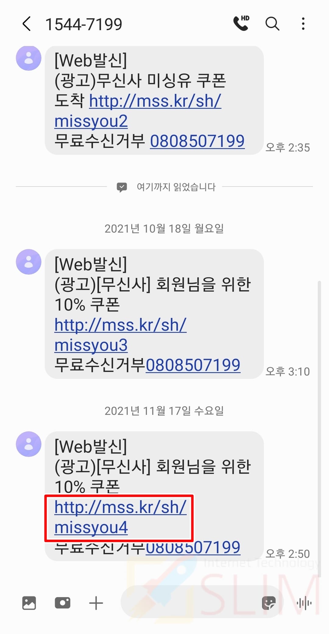 ▲ 테스트를 위해서 문자로 수신된 인터넷 url 주소를 눌러보도록 하겠습니다.