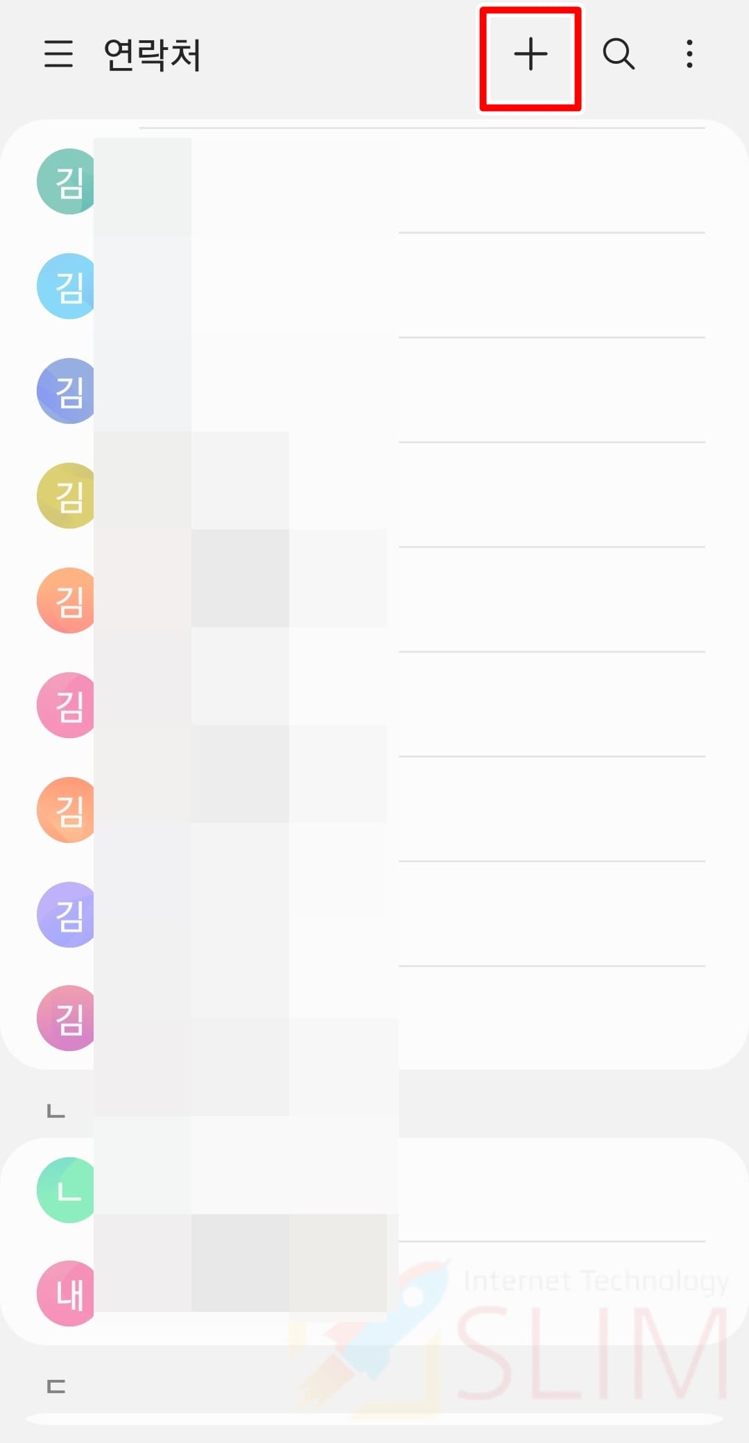 1. 연락처 앱에서 우측 상단 + 버튼을 클릭합니다.