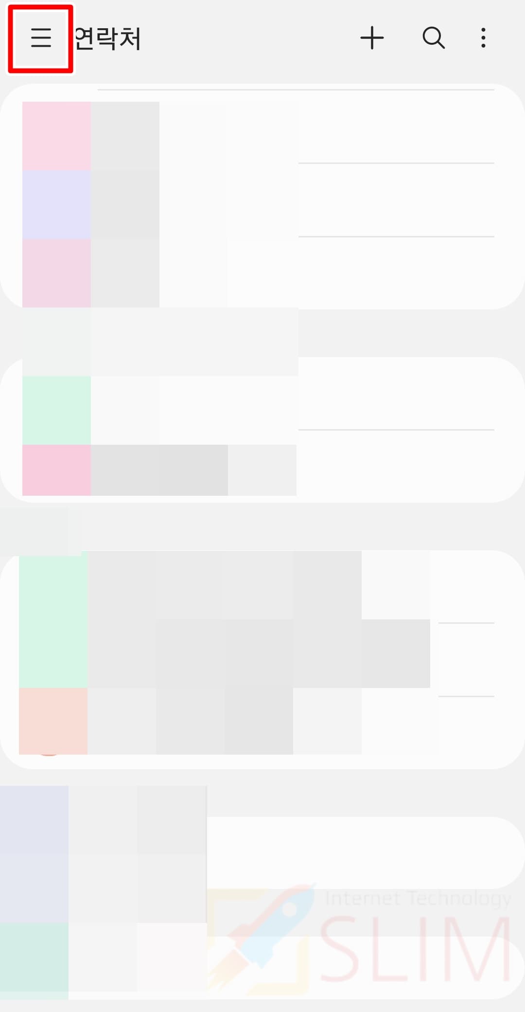 1. 연락처 앱에서 좌측 상단 더보기 버튼을 누릅니다.