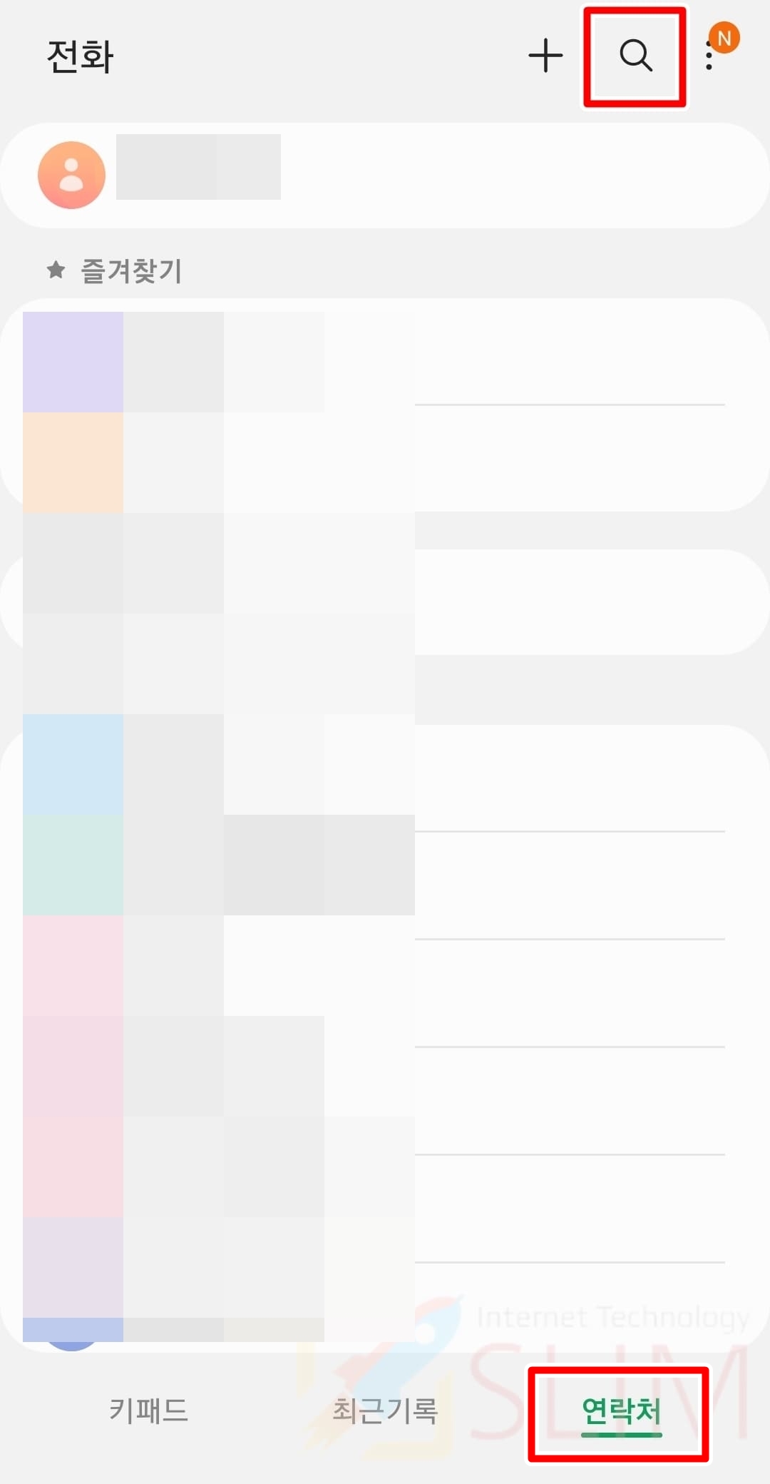 2. 연락처에서 우측 상단 돋보기 버튼을 클릭합니다.