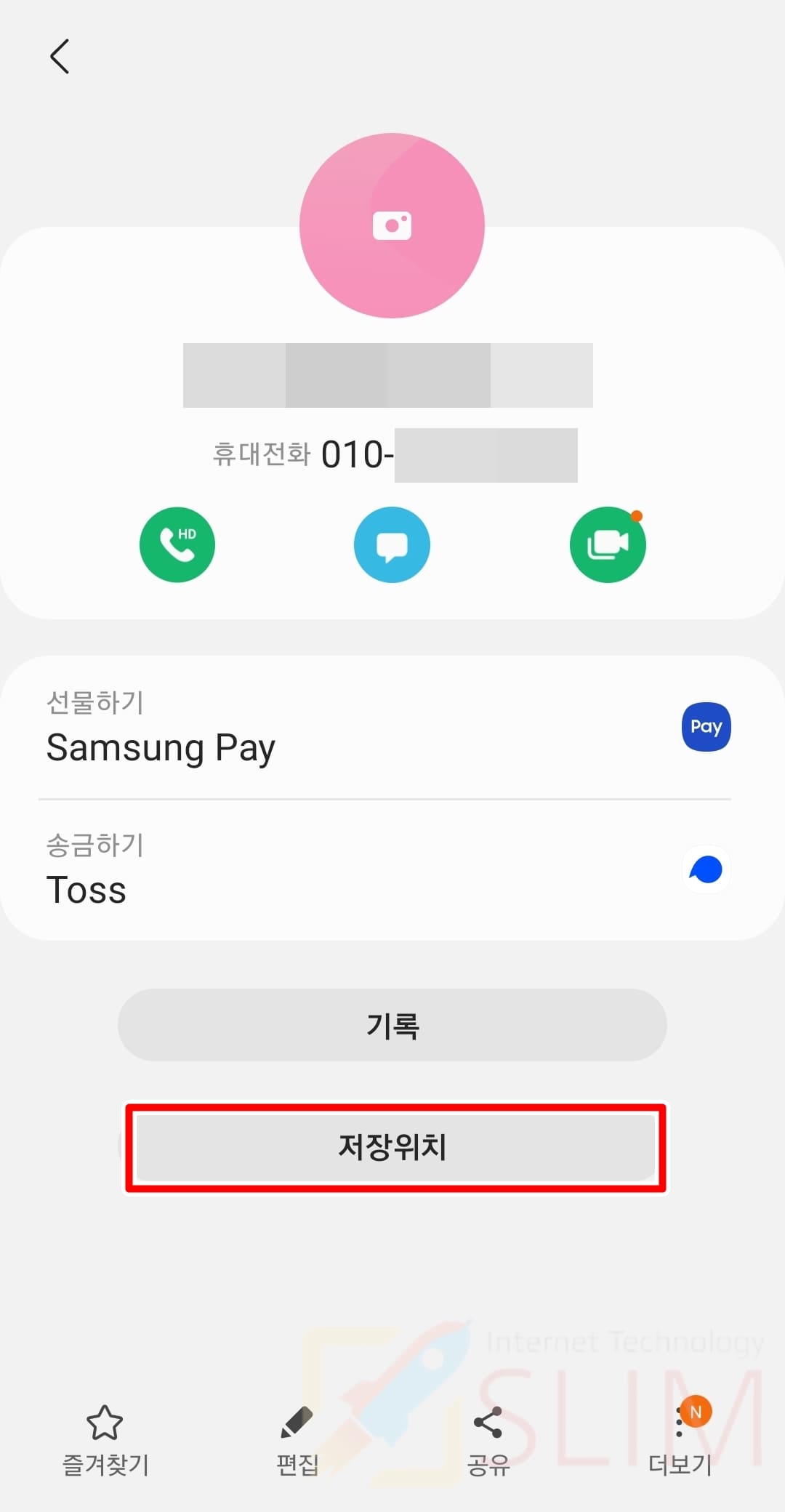 저의 경우 조회한 상대방이 휴대전화 저장공간이 저장위치인 것을 확인할 수 있었습니다. 저장위치는 내가 저장할 때 선택한 공간에 따라서 삼성계정, 구글계정, 유심, 휴대전화 저장공간 등으로 나눠집니다.