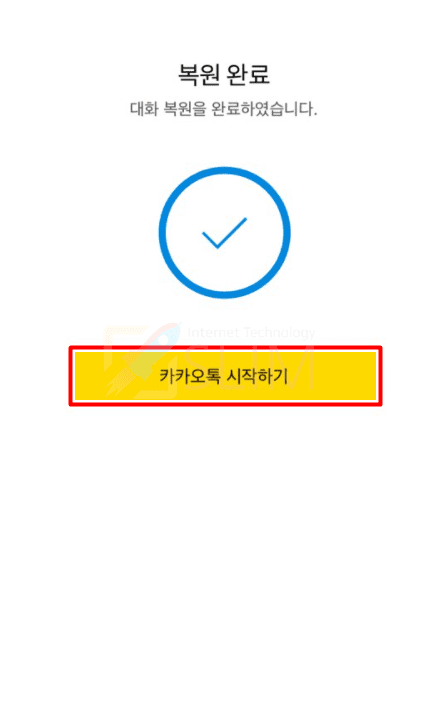 17. 복원 완료 후 카카오톡 시작하기를 클릭합니다.