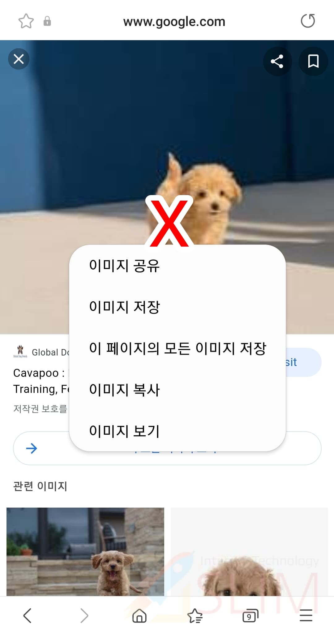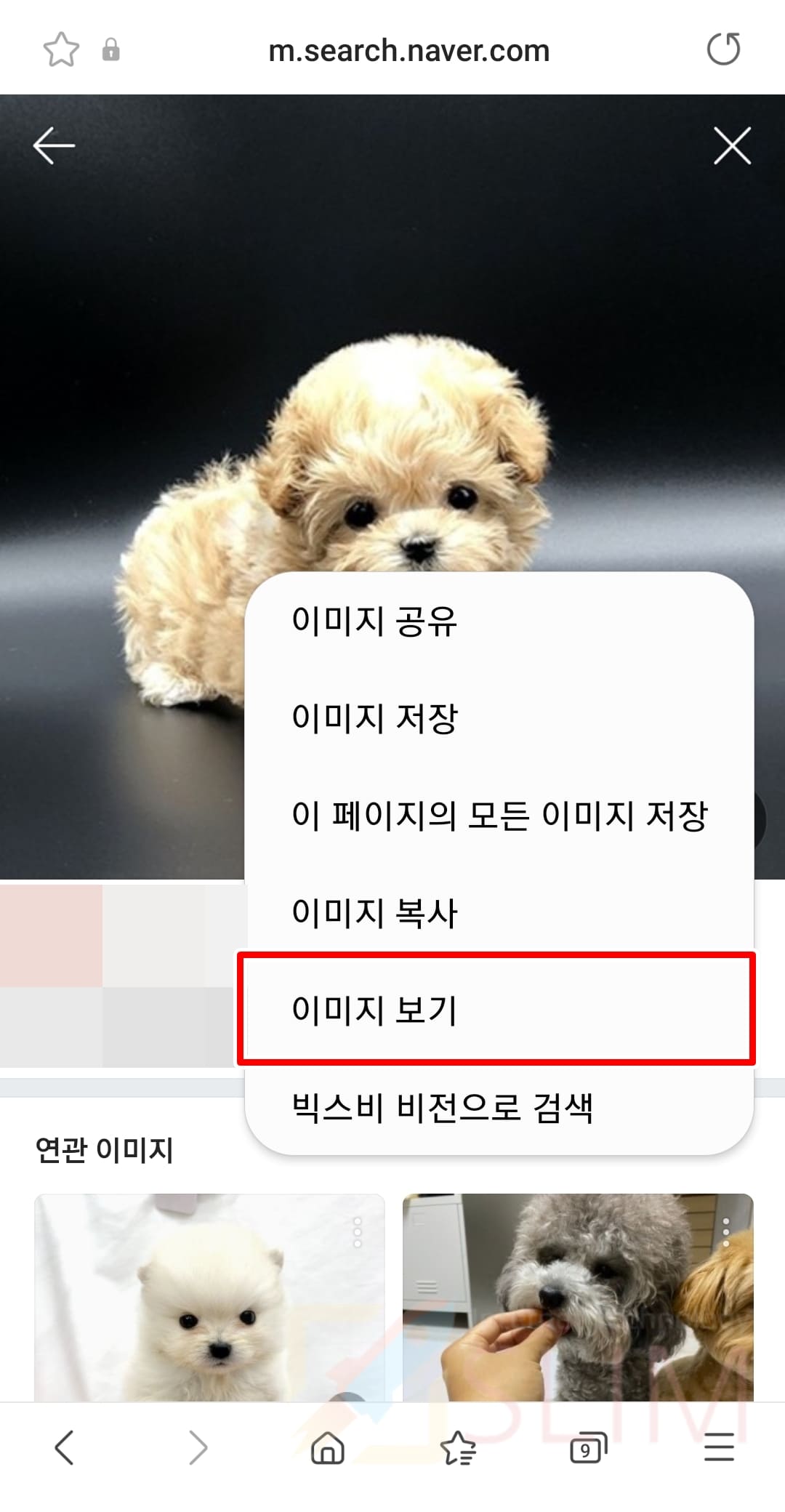 9. 삼성 인터넷에서 검색할 이미지를 길게 누릅니다.