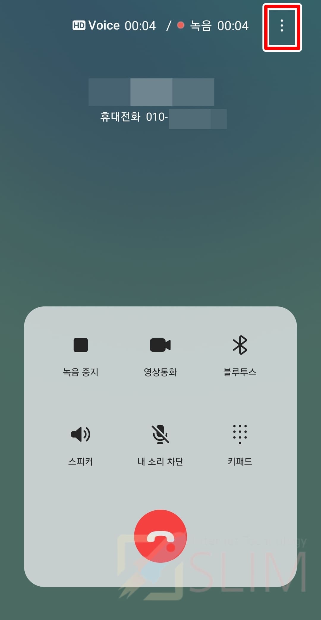 3. 전화가 연결되면 우측 상단 더보기 버튼을 클릭합니다.