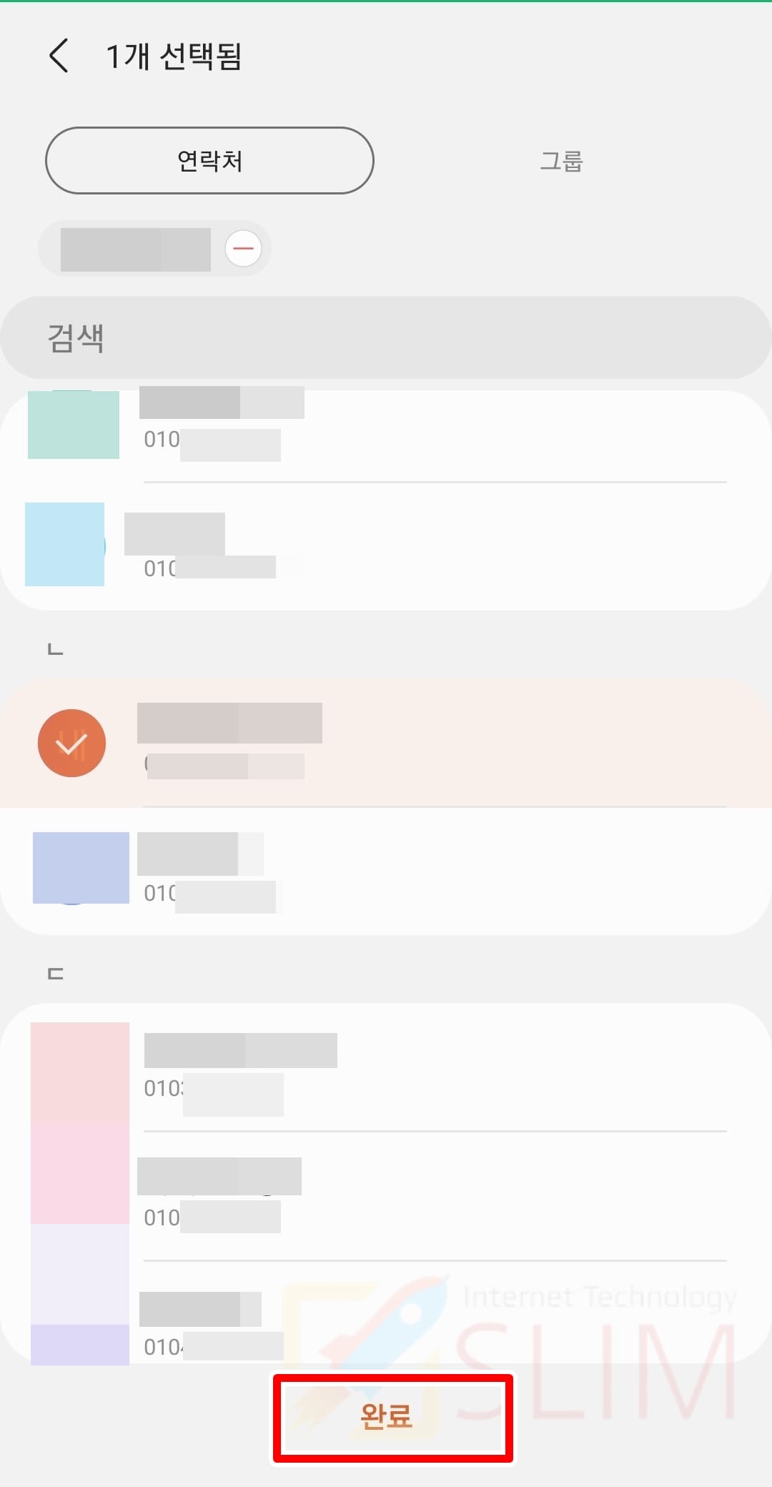 6. 연락처에서 함께 통화하고 싶은 사람을 모두 선택합니다.