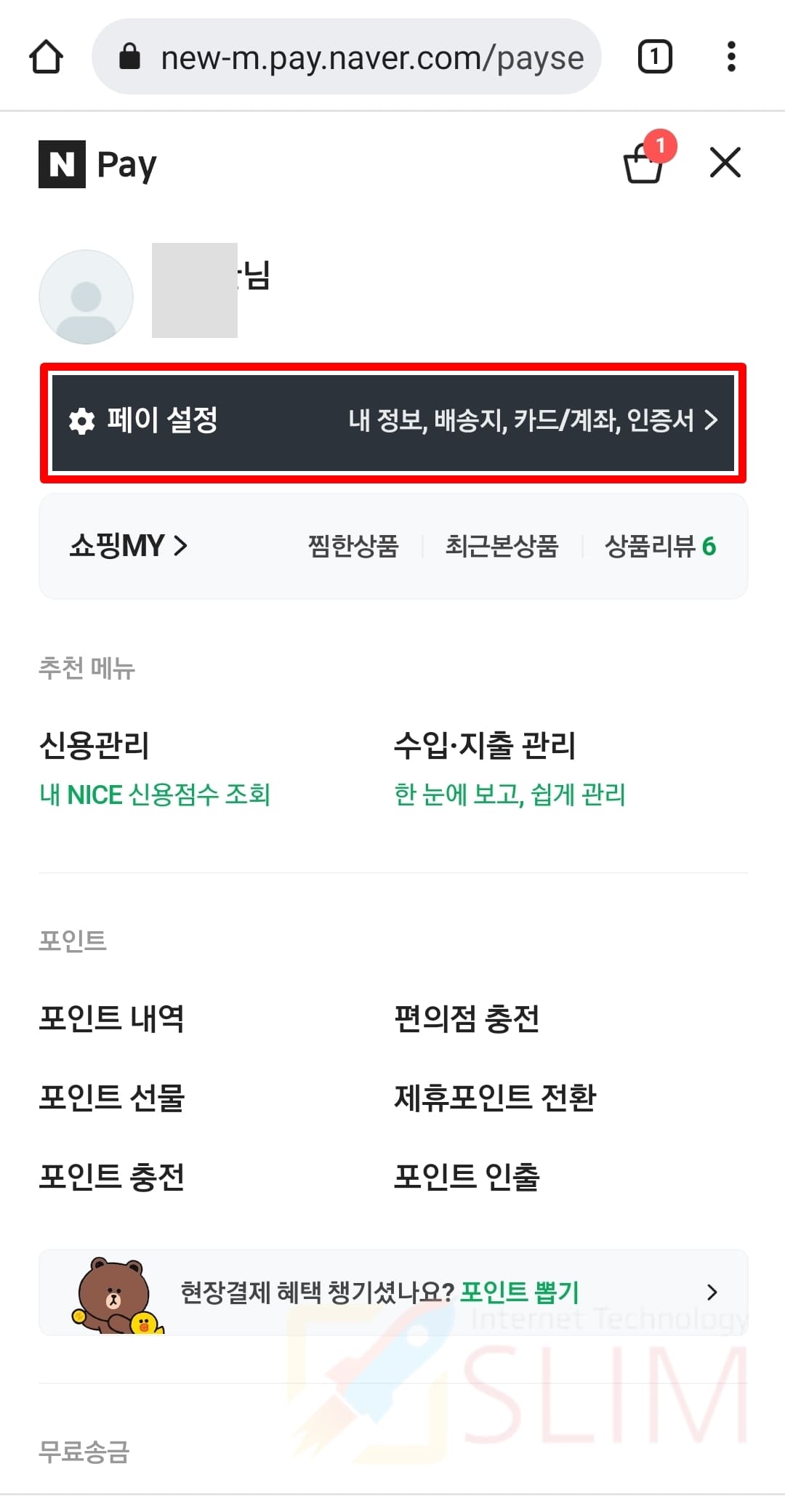 4. 카드 관리를 누릅니다.