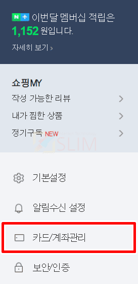 3. 좌측 카테고리에서 카드/계좌관리를 누릅니다.