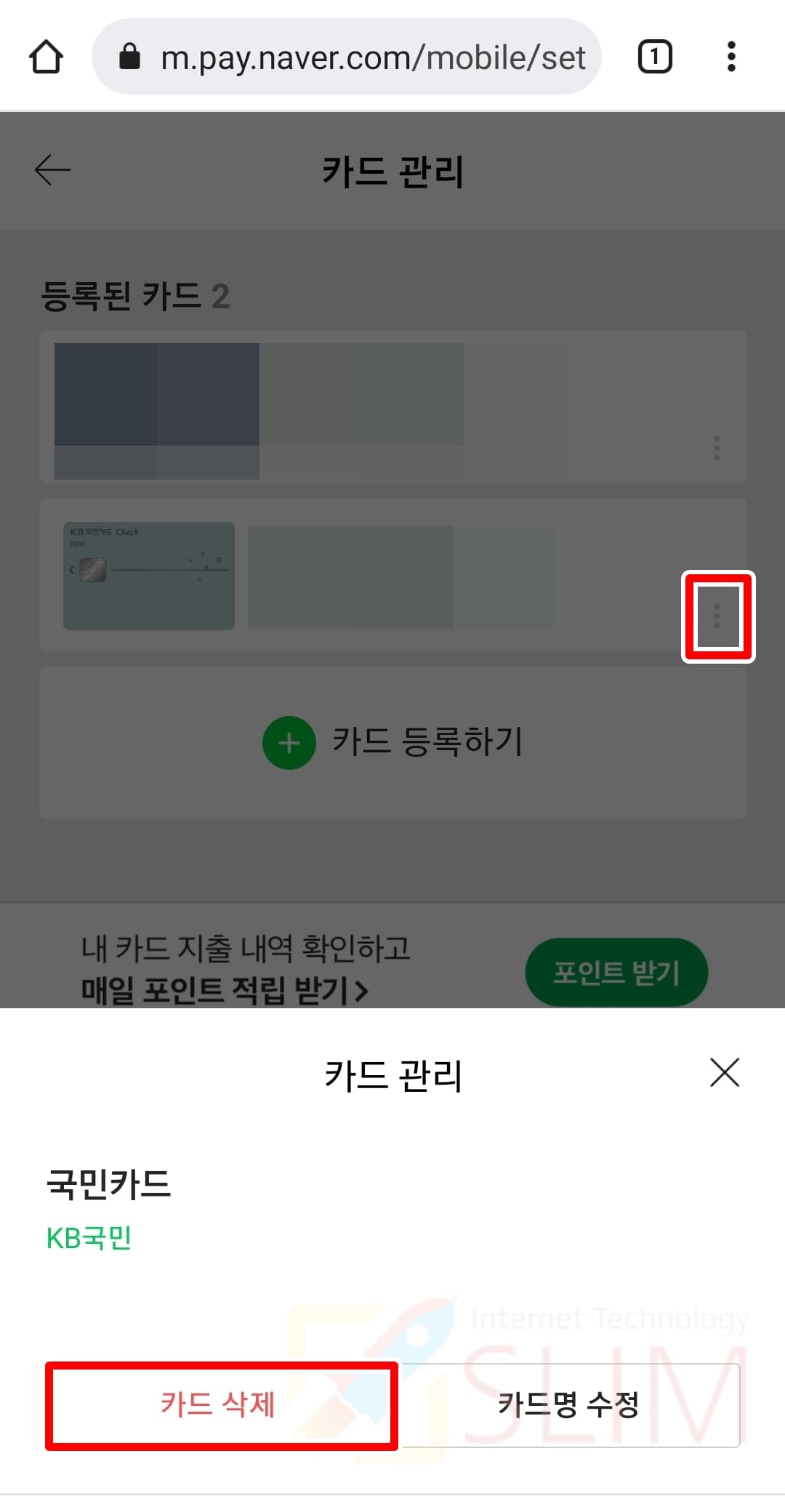 2. 카드 삭제를 누르면 등록이 취소됩니다.