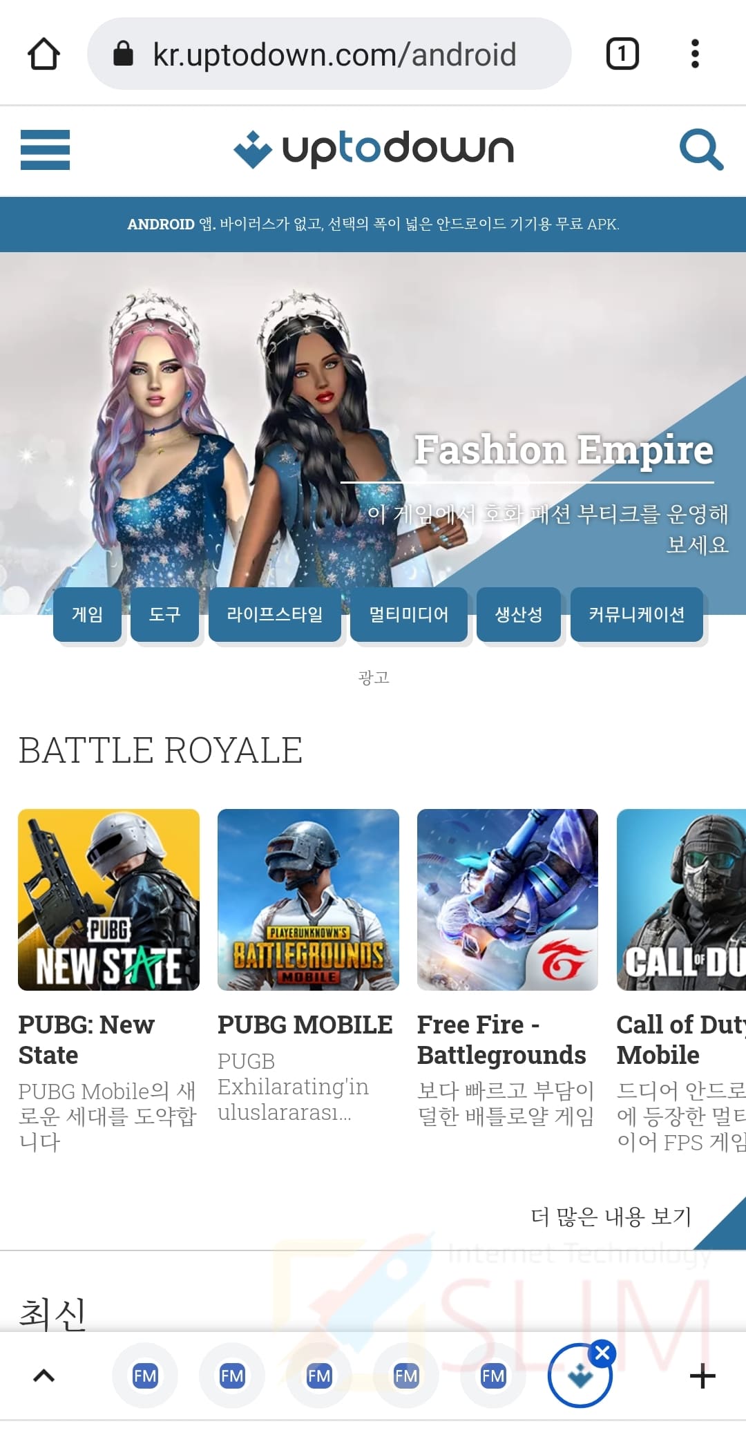 1. 스마트폰에서 https://kr.uptodown.com/android 사이트를 실행합니다.