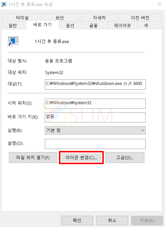 11. 아이콘 변경(C)를 누릅니다.