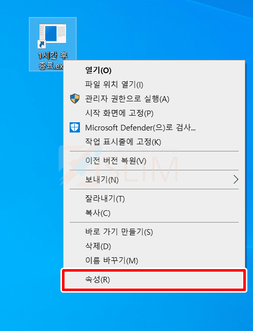 7. 바탕화면에 예약 종료 바로가기 아이콘이 만들어집니다.