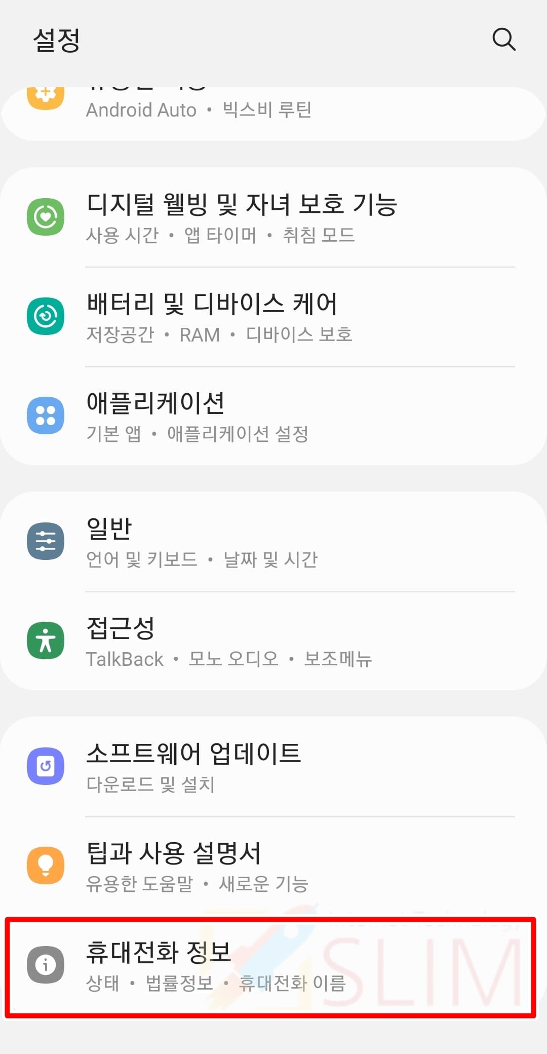 2. 휴대전화 정보를 클릭합니다.