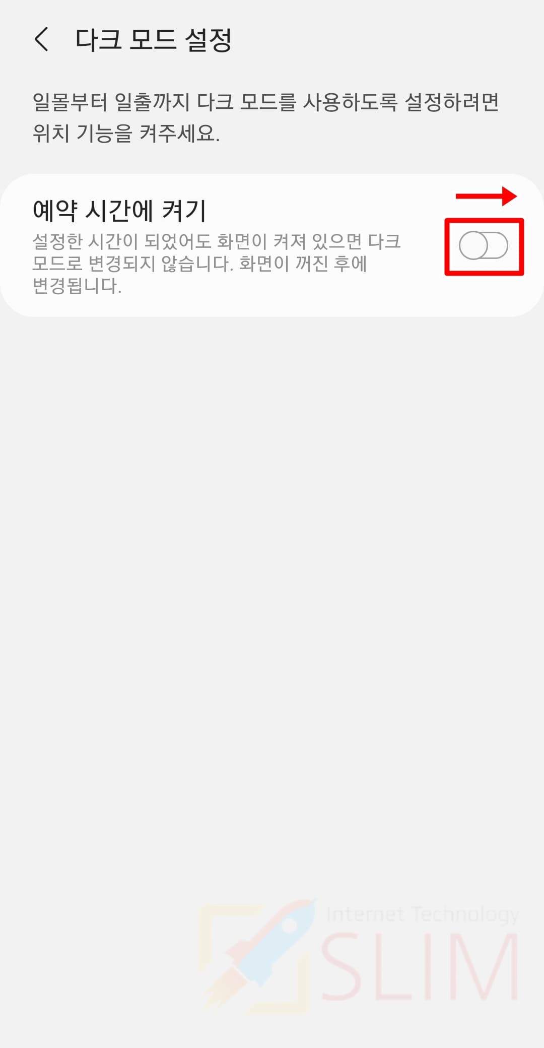9. 설정 시간에는 다크모드가 자동으로 켜집니다.