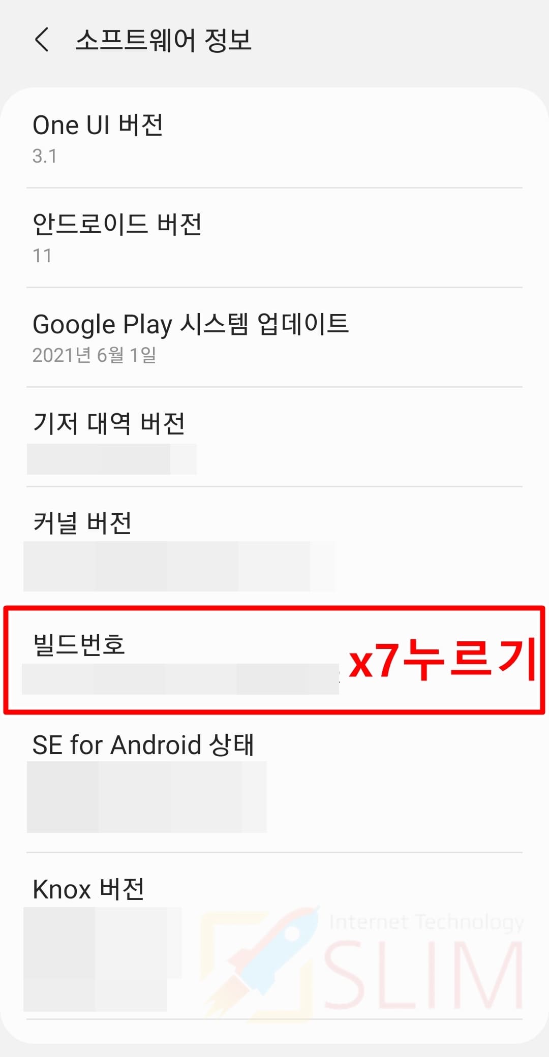 4. 빌드번호를 7번 연속으로 누릅니다.