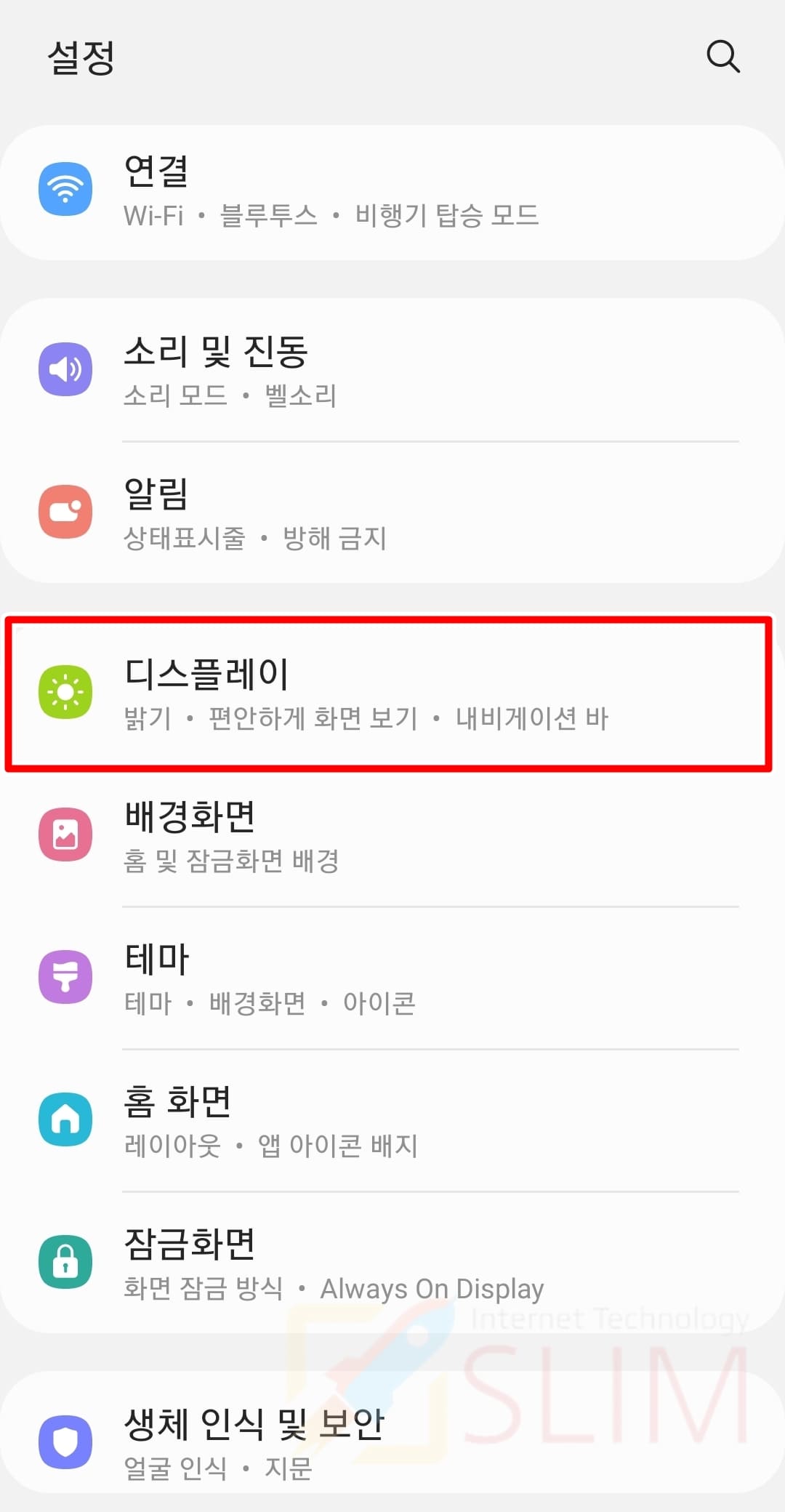 2. 디스플레이를 클릭합니다.