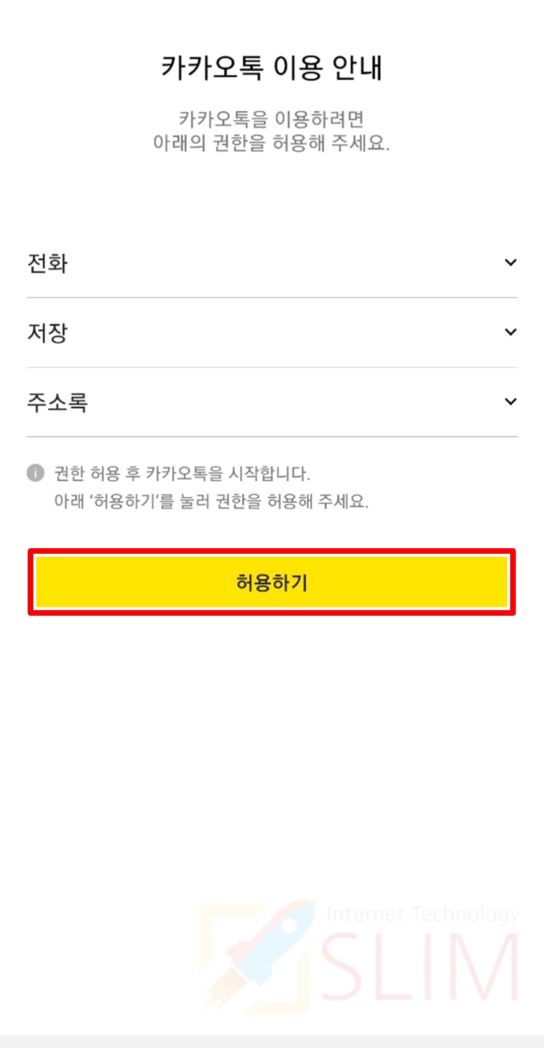 2. 이용 안내에서 허용하기 버튼을 클릭합니다.
