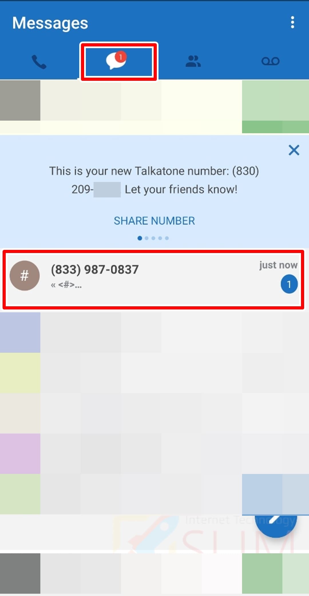 말풍선 메뉴가 바로 가상번호로 수신된 문자들을 확인하는 곳입니다. 여기서 살펴보시면 [#]으로 최근에 온 문자가 있을텐데 이것이 카카오톡 문자인증입니다.