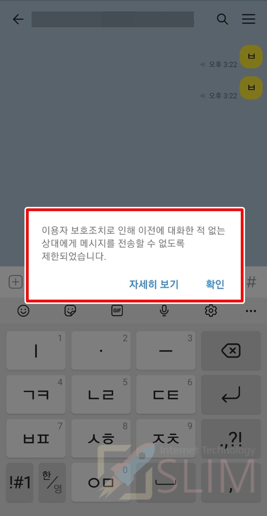 위의 카카오톡 전화번호없이 계정 만들기는 쉽게 따라해서 부계정 가입을 하셨을 것입니다. 그런데 친구를 추가할려고 하거나, 친구에게 메시지를 보냈을 때 아래와 같이 '이용자 보호조치'가 나올텐데요. 이러한 보호조치로 인해서 친구추가도 안되고 메시지도 보내지지 않아서 당황스러우셨을 것입니다. 그래서 꼭 카카오톡 이용자 보호조치 제한 해제 방법을 알아두셔야 합니다.