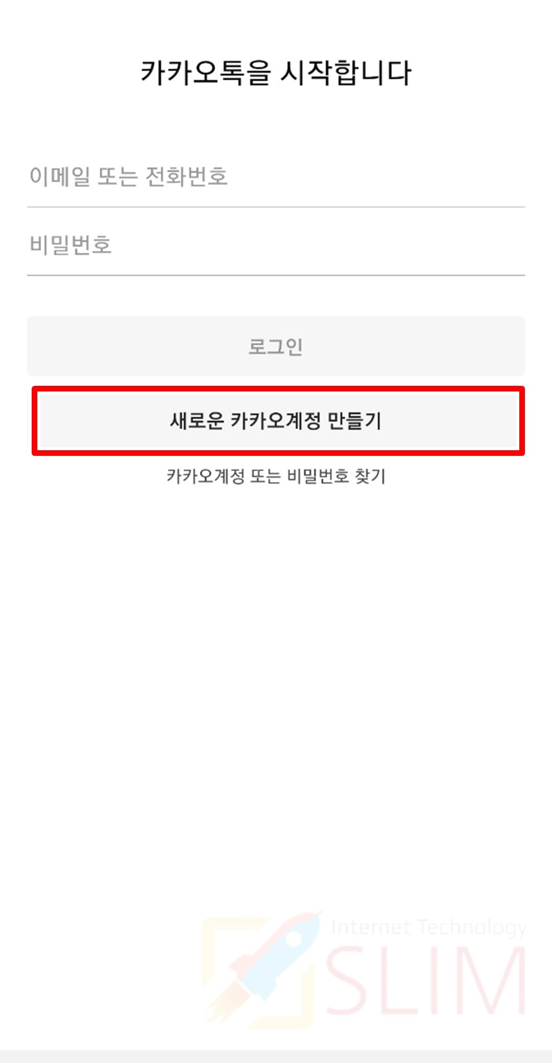 3. 새로운 카카오계정 만들기를 누릅니다.
