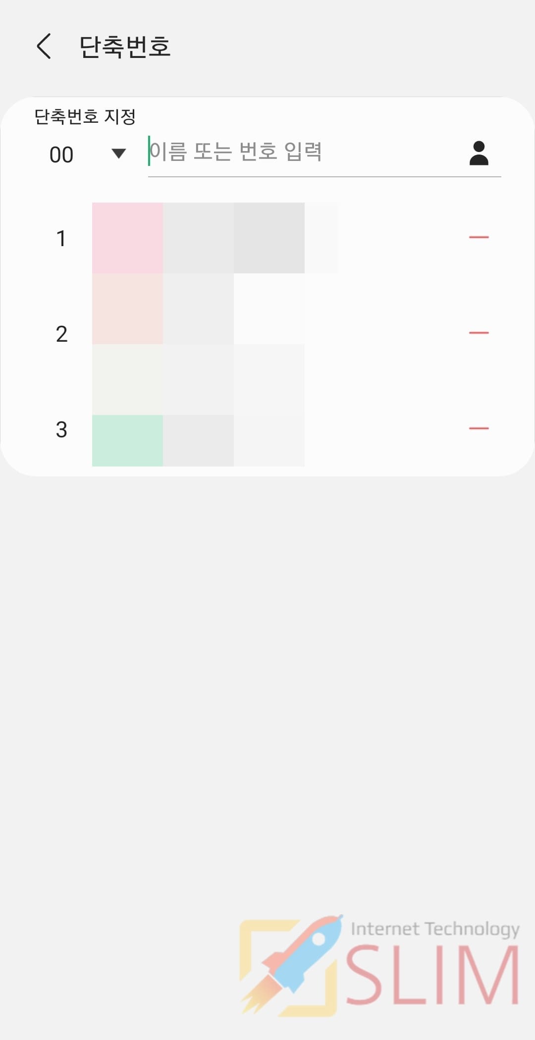 3. 설정된 단축번호 목록에서 우측의 마이너스(-)를 누르면 삭제됩니다.