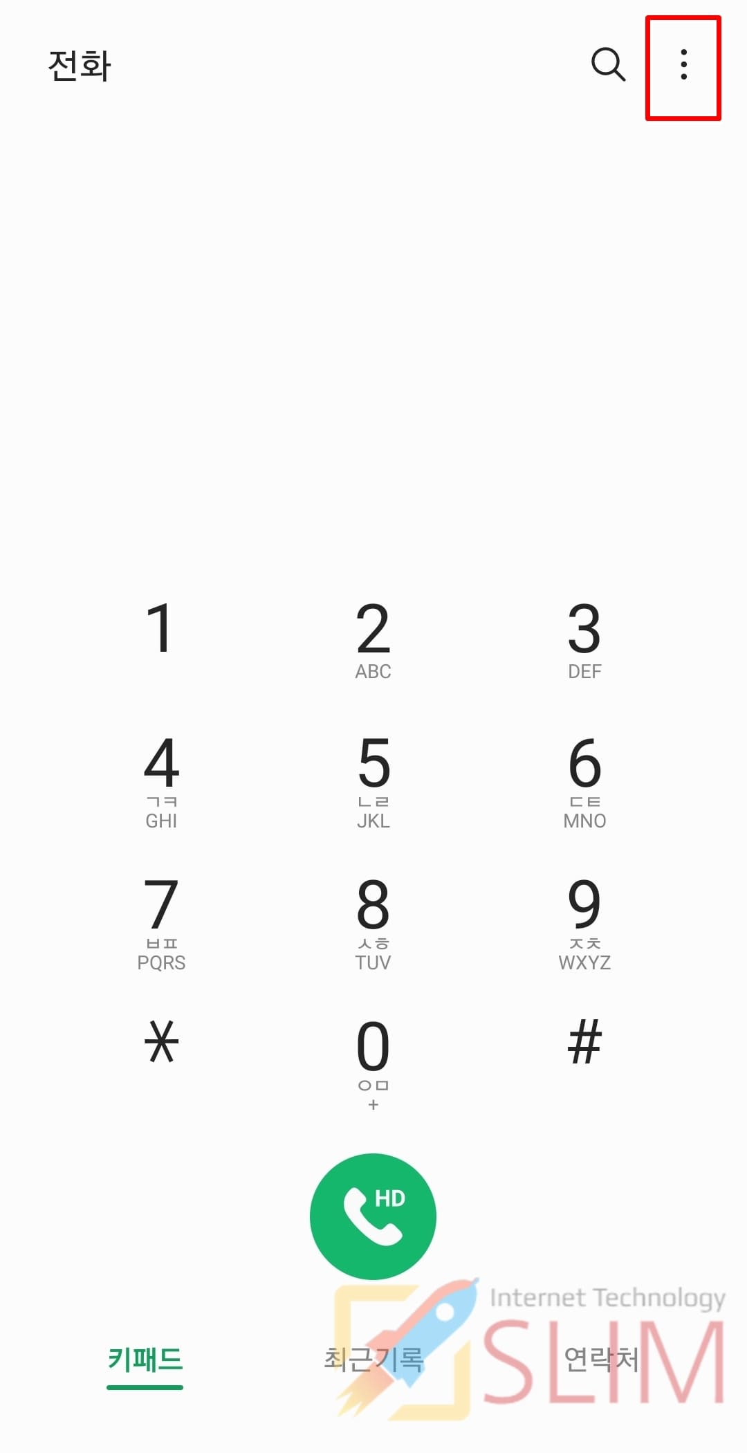 1. 갤럭시 기본 앱 키패드 화면에서 더보기 버튼을 누릅니다.