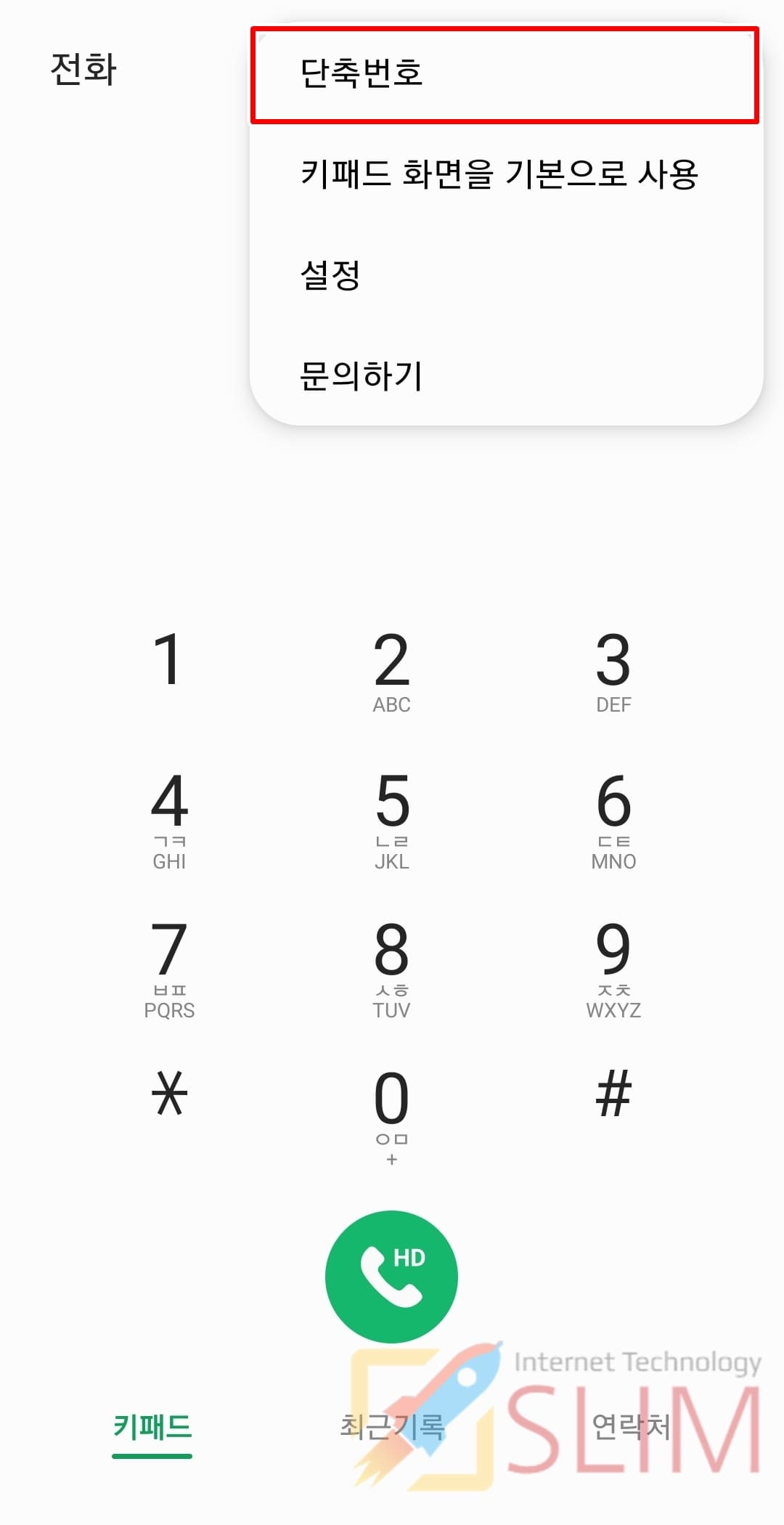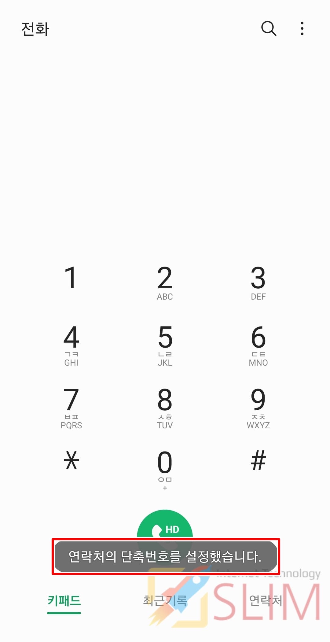 1. 기본 전화 앱 키패드 화면에서 설정하고 싶은 단축번호를 길게 누릅니다.