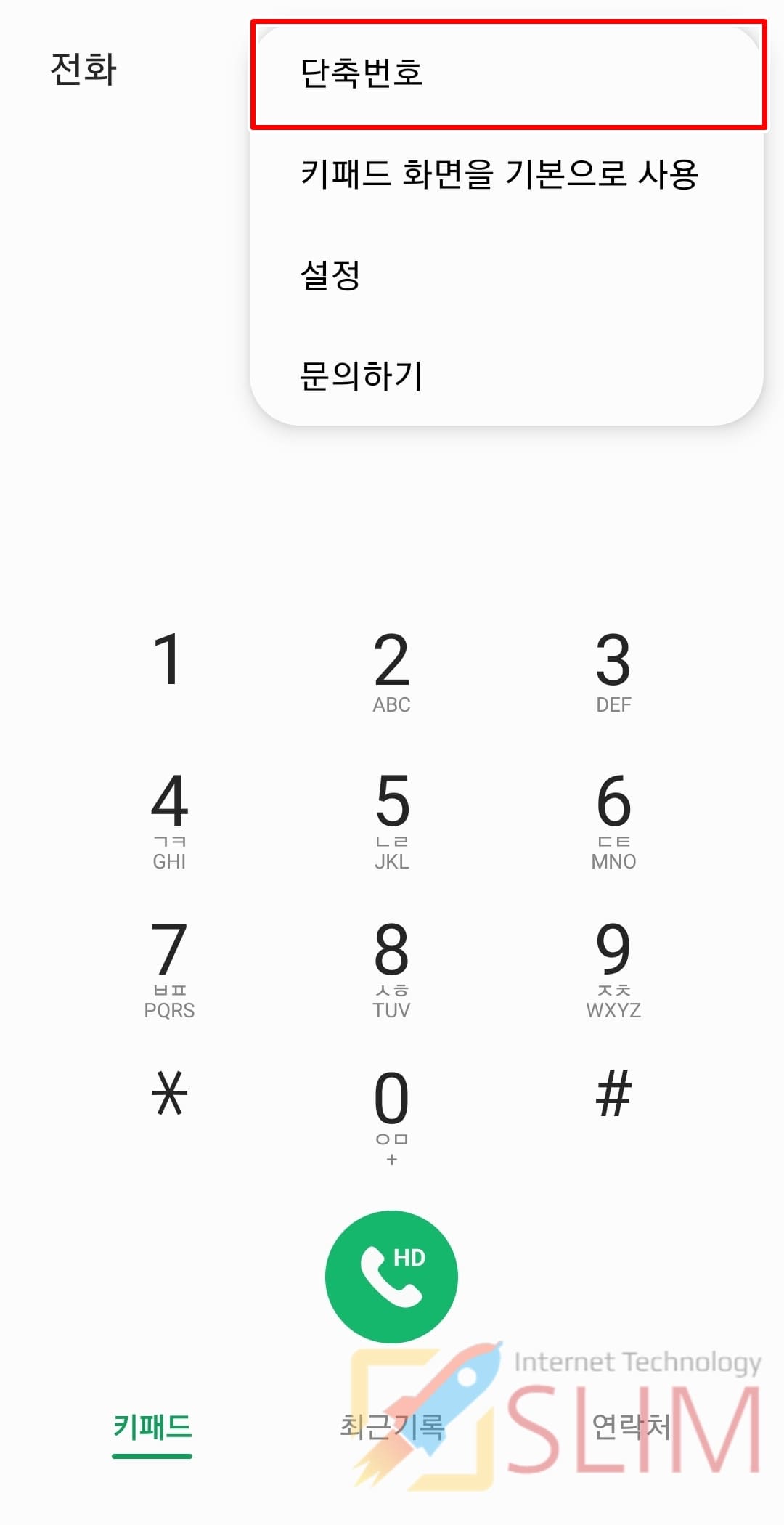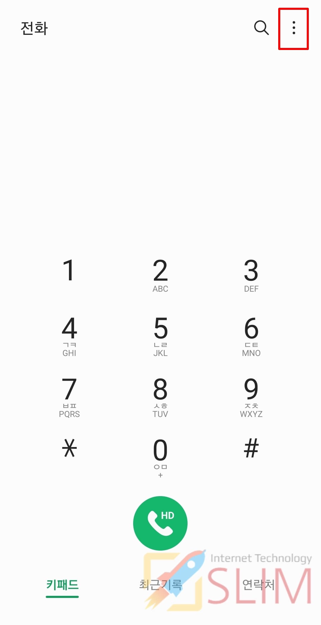 1. 갤럭시 기본 앱 키패드 화면에서 더보기 버튼을 누릅니다.