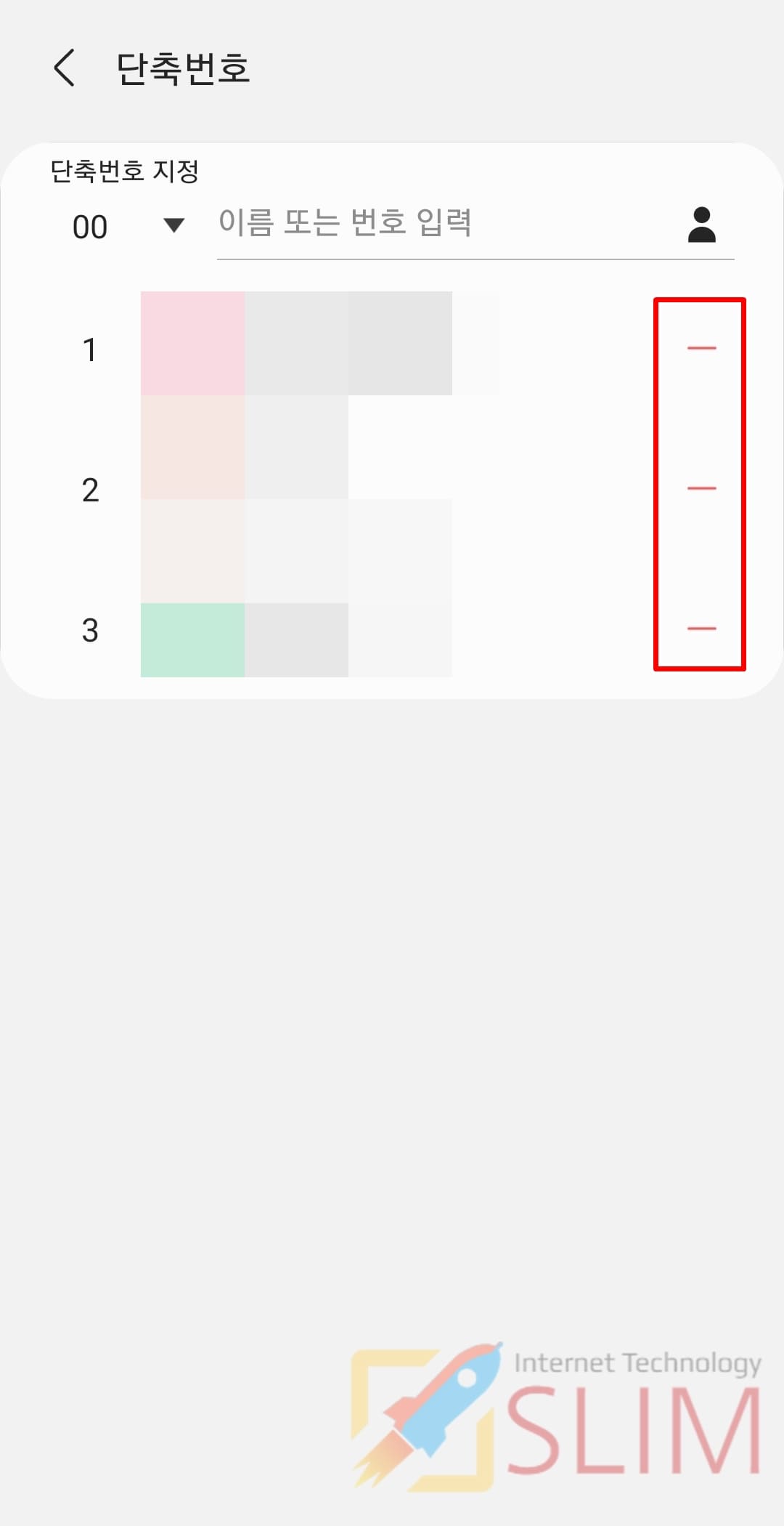 3. 설정된 단축번호 목록에서 우측의 마이너스(-)를 누르면 삭제됩니다.