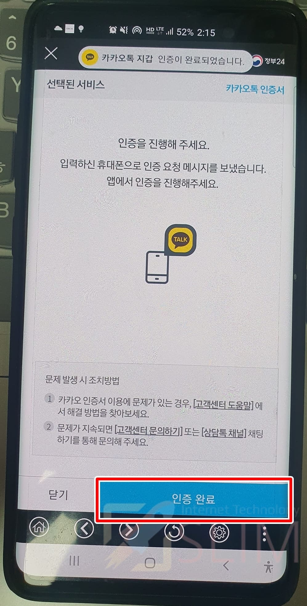 5. 정부24 앱에서 인증 완료를 클릭합니다.