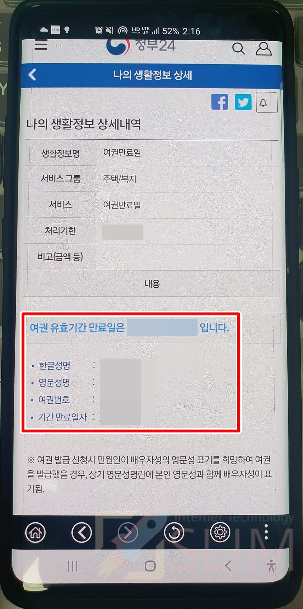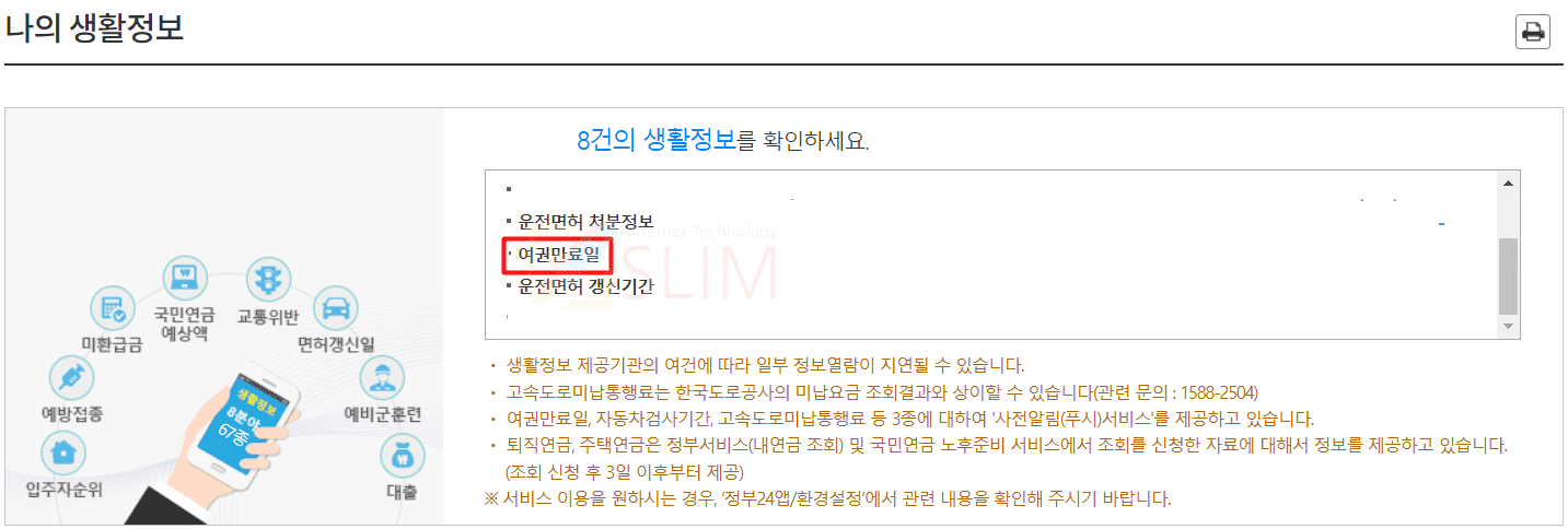 13. 나의 생활정보에서 여권만료일을 클릭합니다.