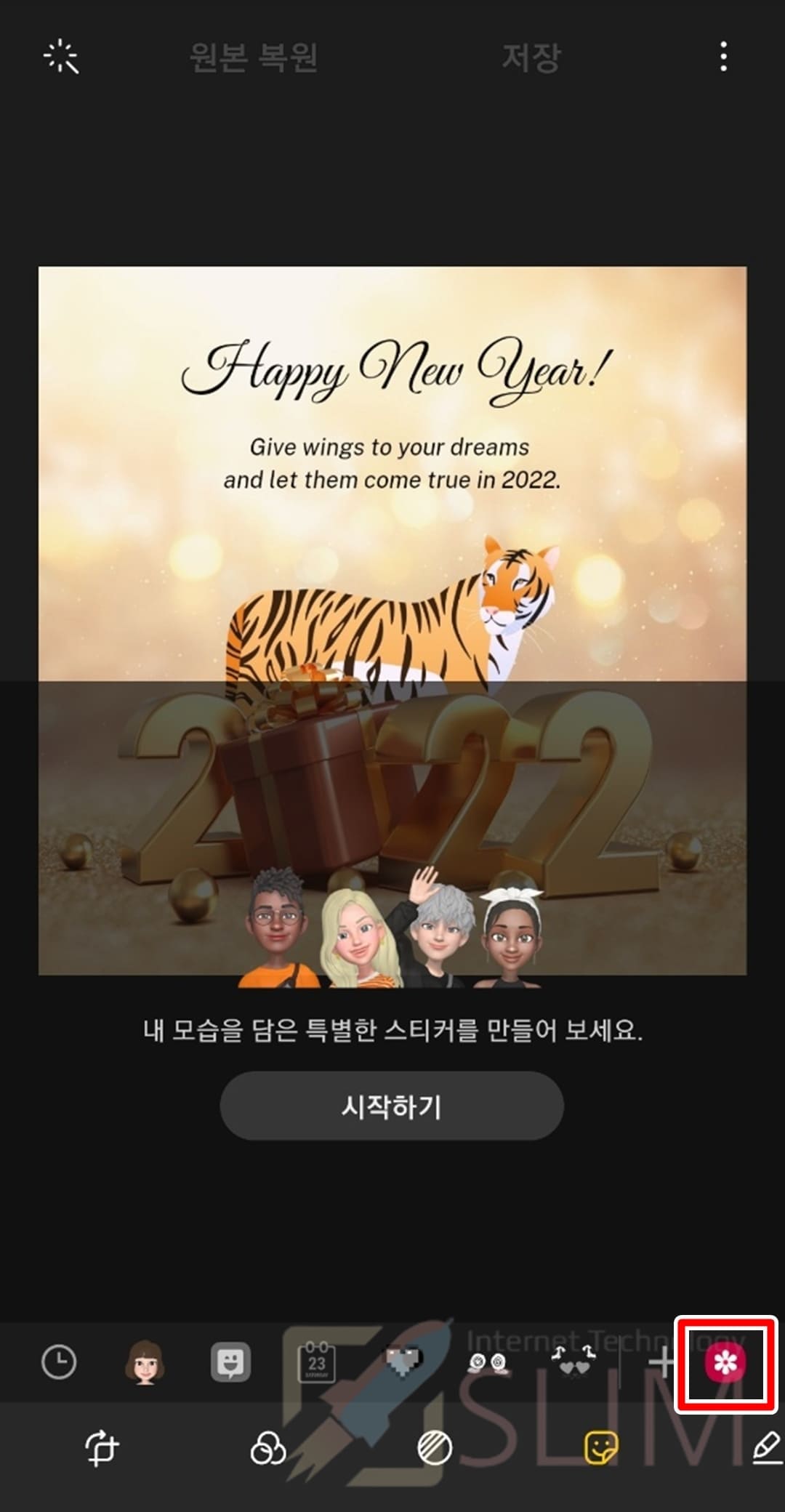 3. 우측 하단에서 스티커 버튼을 클릭합니다.