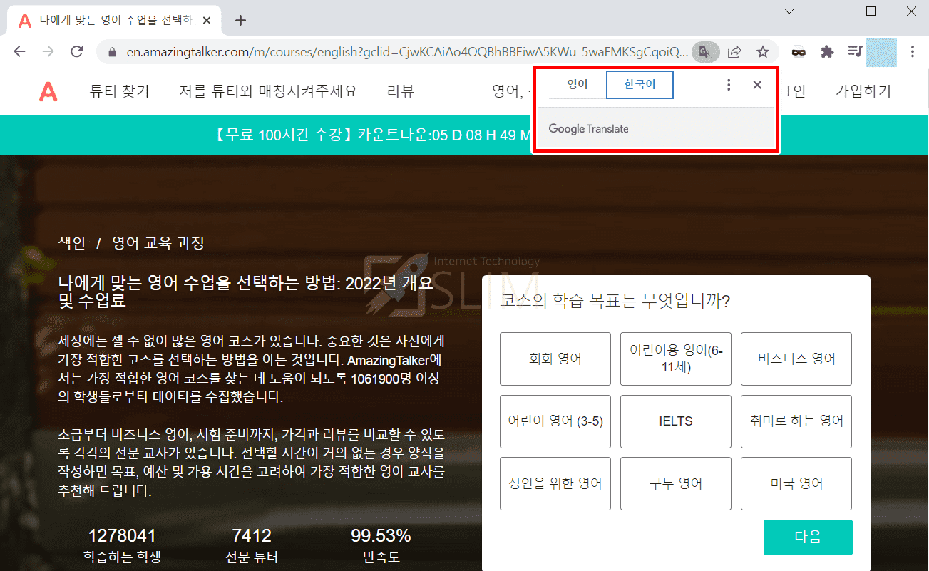 이제 외국어로 된 사이트를 접속해도 번역을 물어보는 팝업창이 완전히 해제되서 보이지 않습니다.