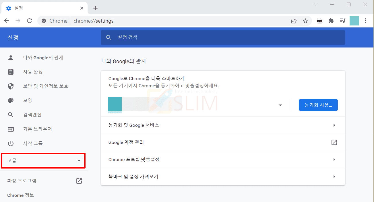 3. 좌측 카테고리에서 고급을 클릭합니다.