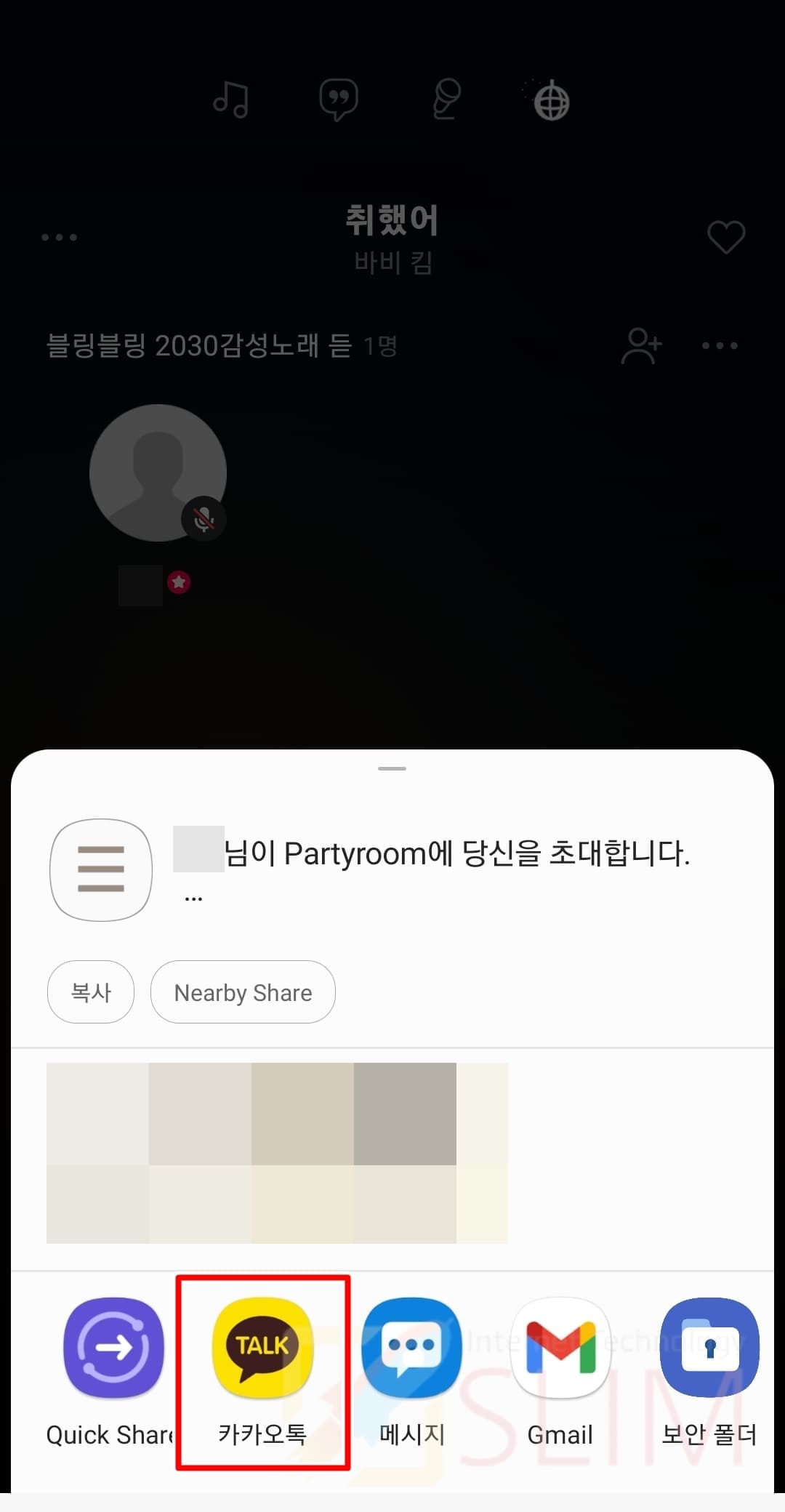 9. 채팅방을 선택하면 파티룸 초대링크를 보낼 수 있습니다.