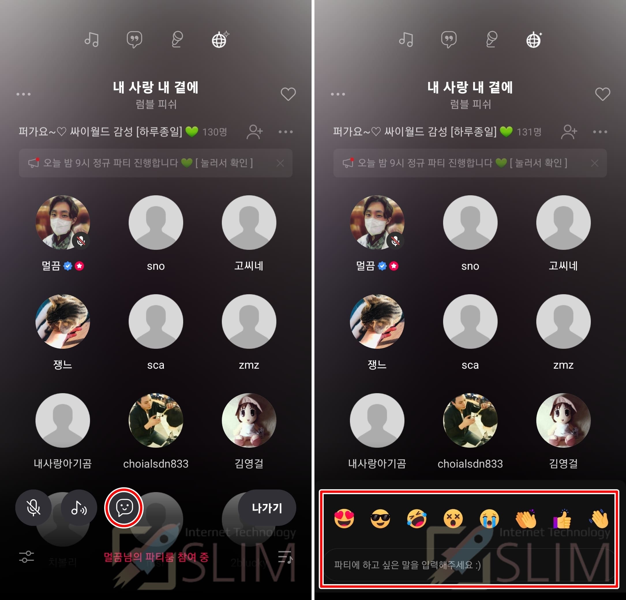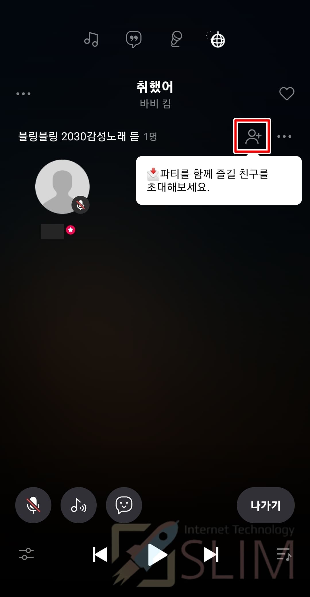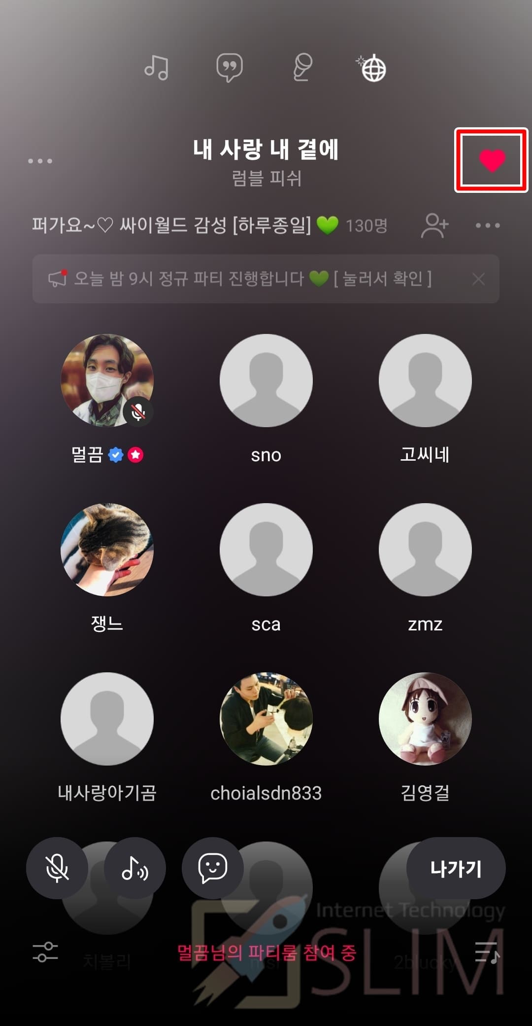 5. 파티룸에서 사람들과 함께 노래를 들으며 소통할 수 있습니다.