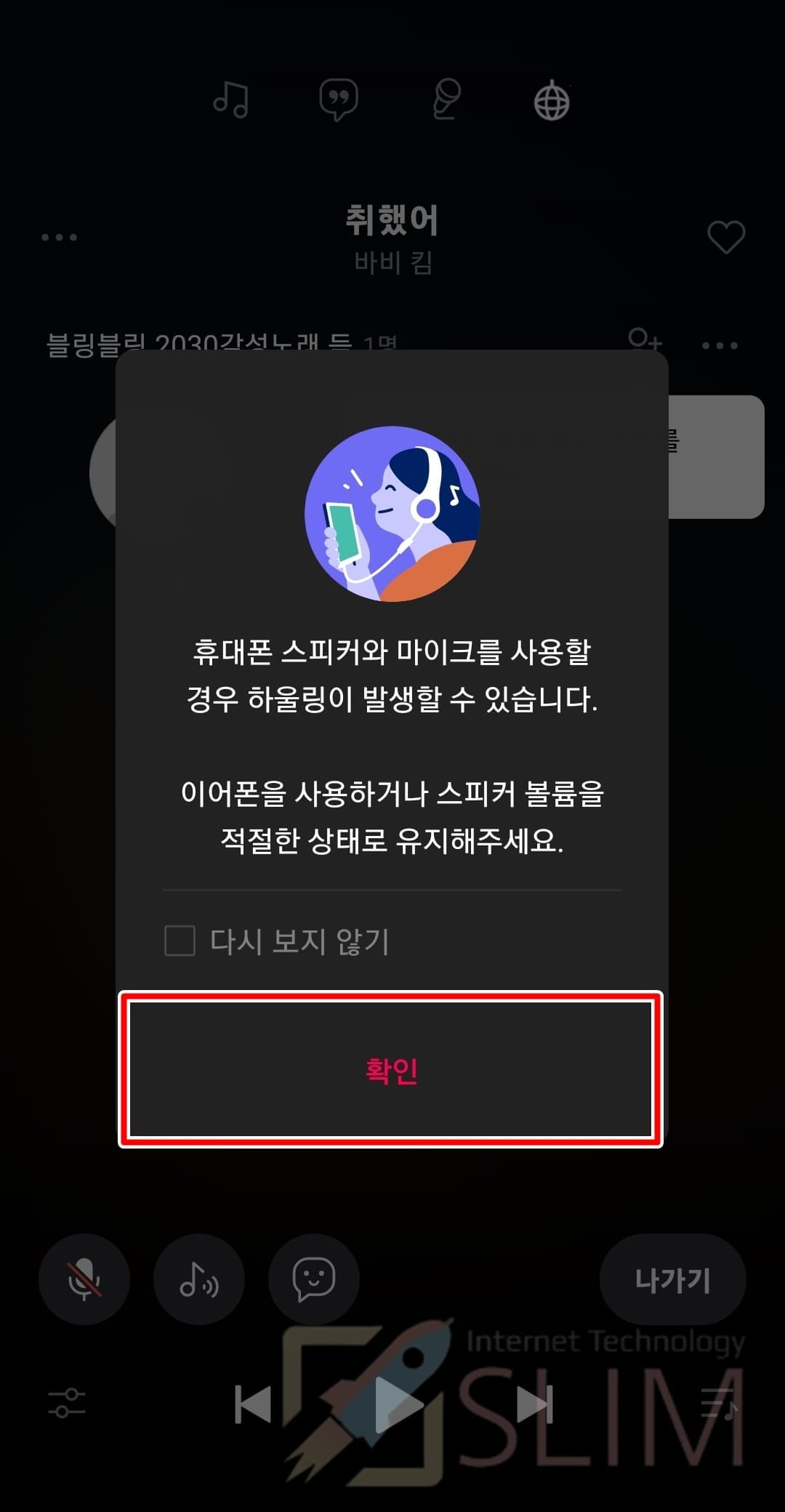 5. 스피커 마우스 하울링 안내에서 확인을 누릅니다.