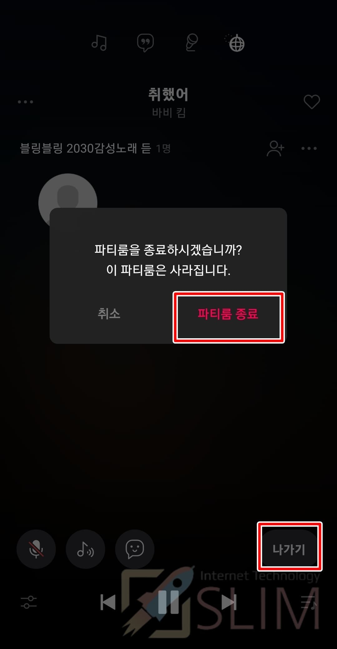 파티룸을 만든 방장 호스트가 나가기 버튼을 눌러서 종료할 경우 파티룸은 자동적으로 해제됩니다.