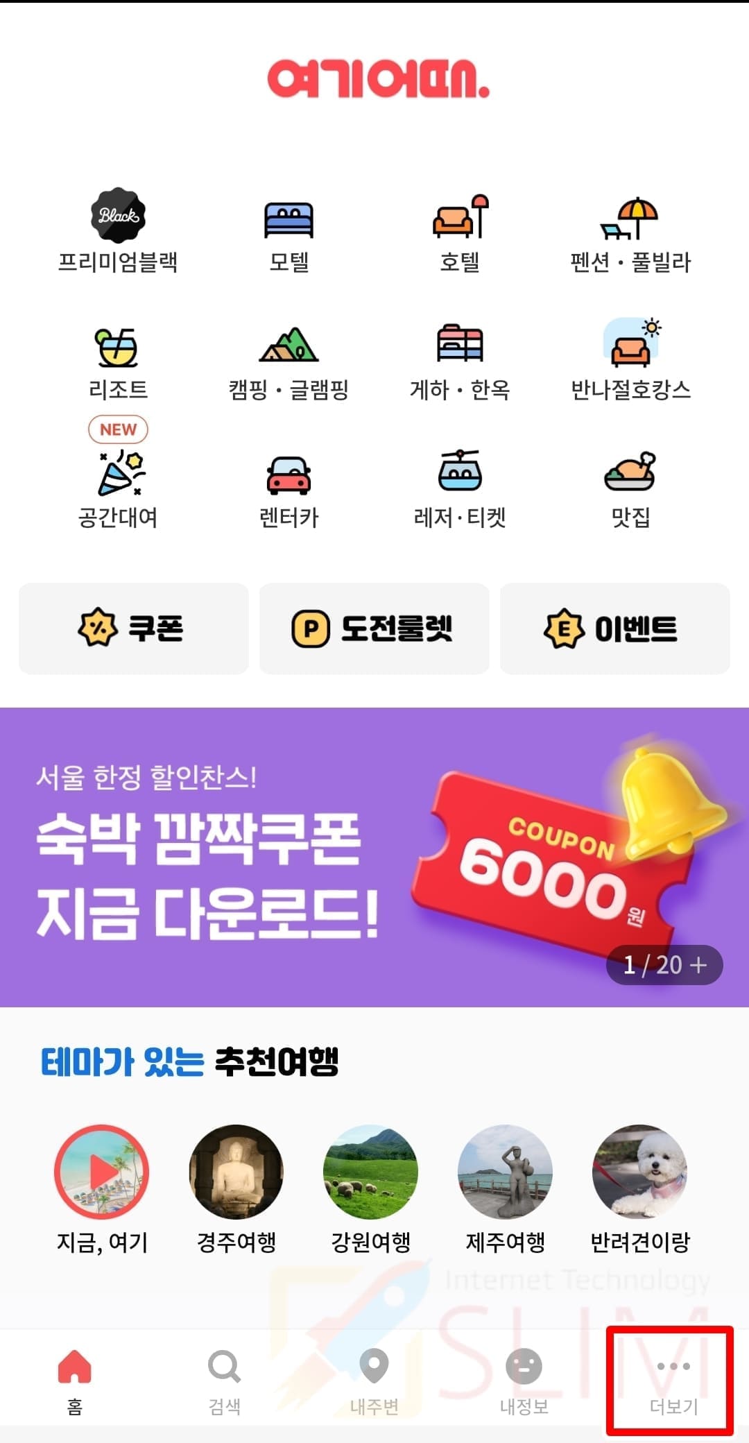 1. 스마트폰에서 여기어때 앱을 실행합니다.