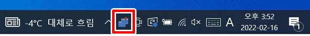 보이지 않는다면 작업표시줄 ∧ 버튼을 누르고 탑모스트 아이콘을 찾아서 마우스 우클릭해주시면 됩니다.