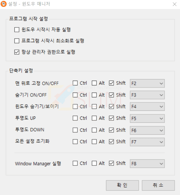 그 외에도 숨기기는 Shift+F3, 투명도 UP은 Shift+F5, DOWN은 Shift+F6 등으로 이용이 가능합니다. 윈도우 매니저 설정에서는 이러한 단축키를 확인하고 변경도할 수 있으니 사용하기 편리하게 커스텀해서 사용하시길 바랍니다.