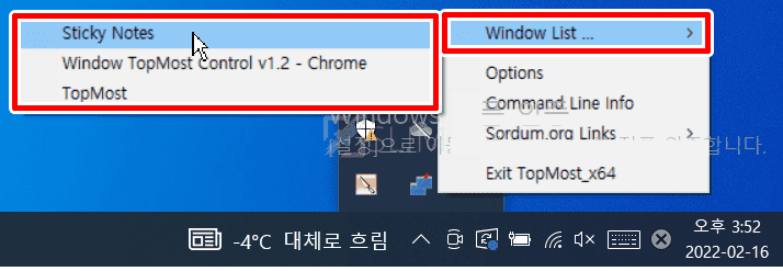 6. 작업표시줄 우측에서 TopMost 아이콘이 추가됩니다.