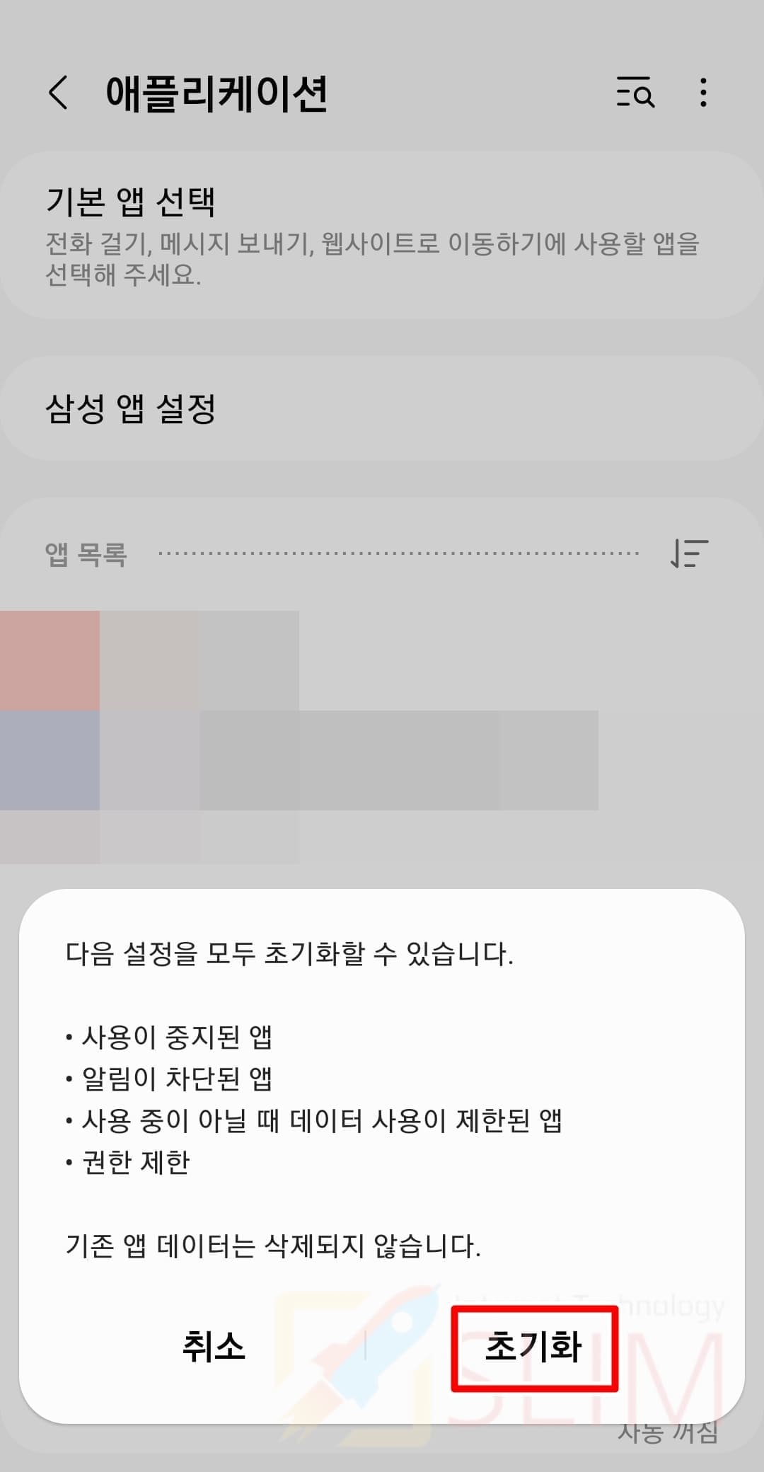 사용이 중지된 앱, 알림이 차단된 앱, 사용중이 아닐 때 데이터 사용이 제한된 앱, 권한 제한 앱까지 모두 설정 초기화가 진행됩니다. 언제든 가장 쉽고 빠르게 갤럭시 정각 알림 해제하고 싶을 땐 앞으론 이 방법을 이용하세요.