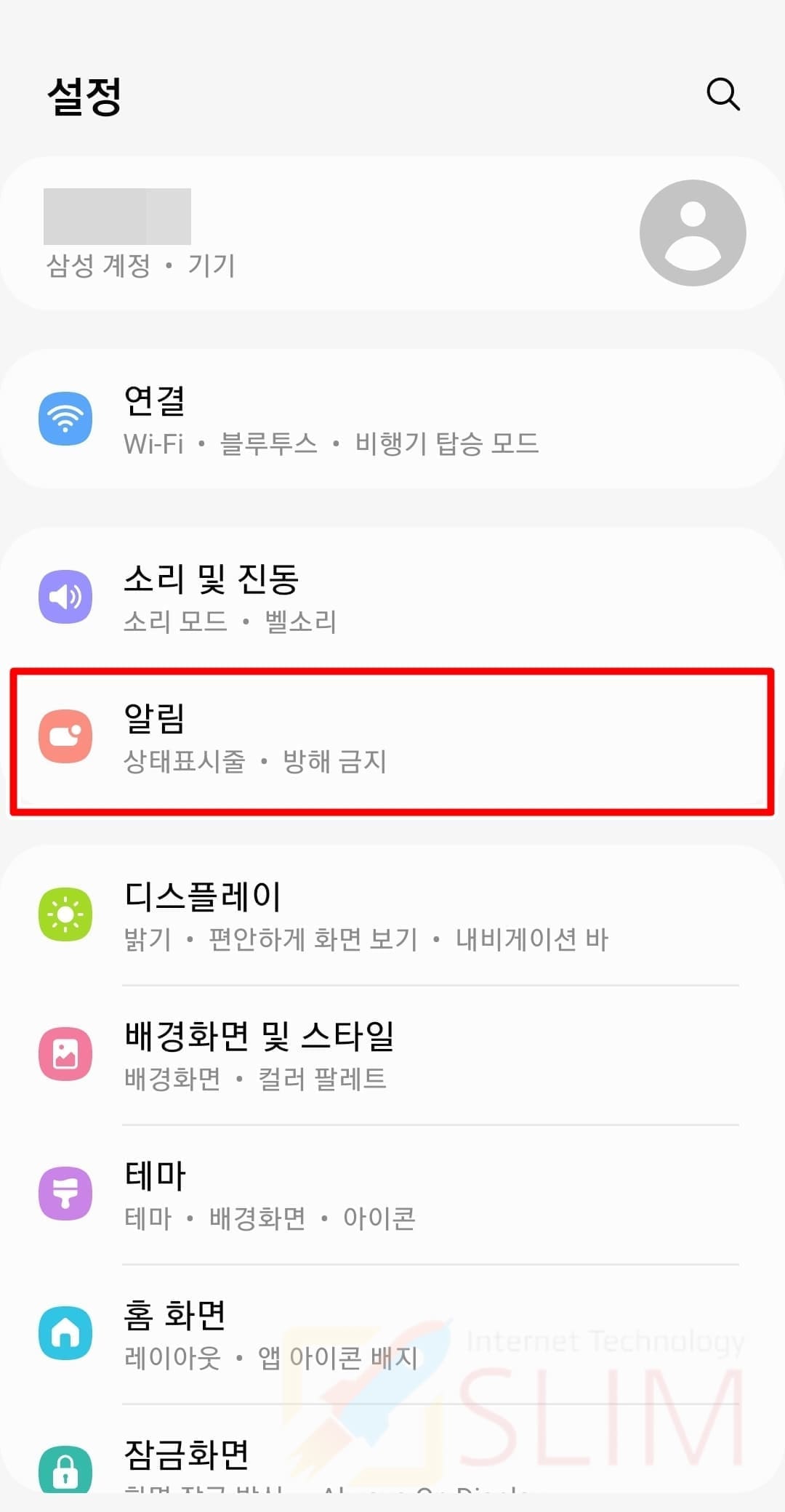 1. 기본 설정 앱에서 알림을 클릭합니다.